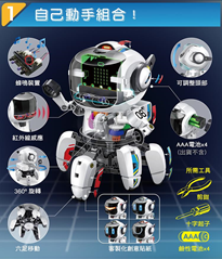 科技寶(Cagebot)智能機器人採用Arduino進行周邊元件控制,以圖控軟體Scratch(mBlock)進行連線或離線的元件控制,透過積木圖像拼貼的方式「寫」程式,讓非電群背景的讀者能容易切入電控的領域。