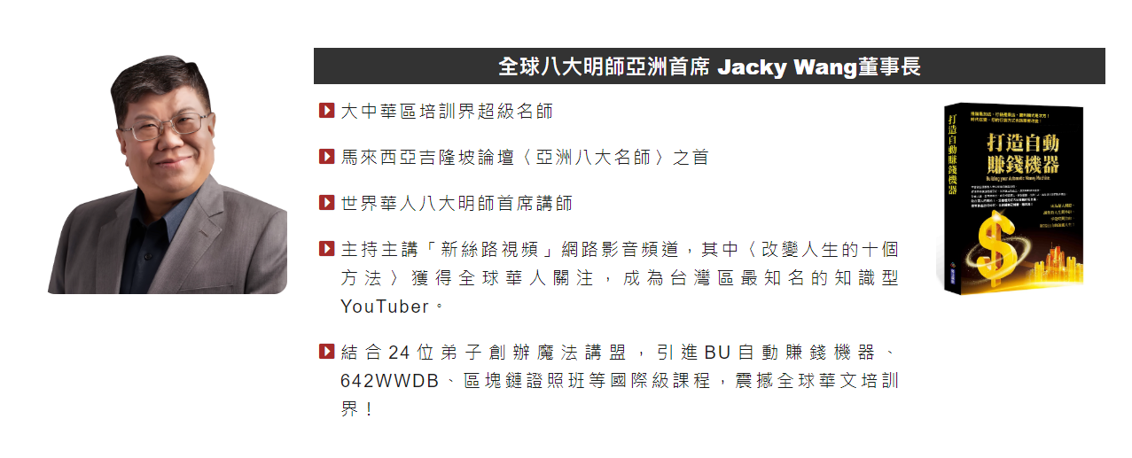 Jacky Wang董事長及David Chin老師聯手為你建構ESBIH三維卦限!