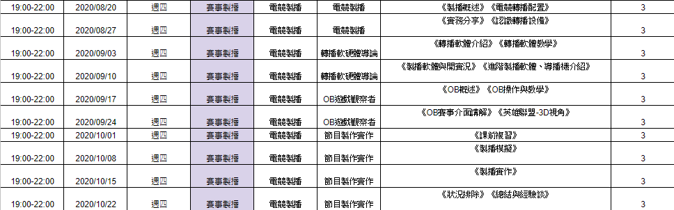 課程內容:電競製播班