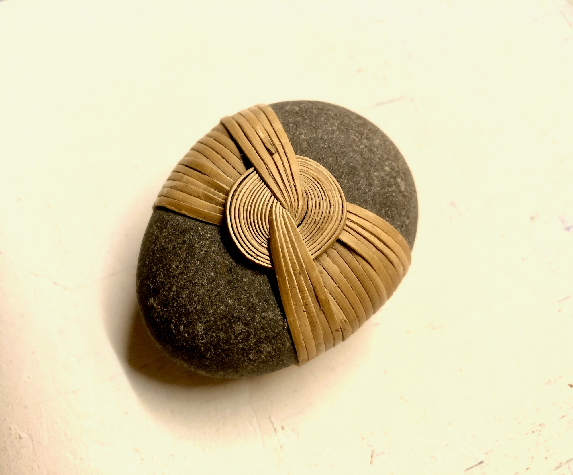 藤皮與石編織桌飾:採集大自然中的礦石,運用藤皮編織,以蝶形捲繞編法及變化,結合石與木,創作屬於自己獨一無二的天然飾品。