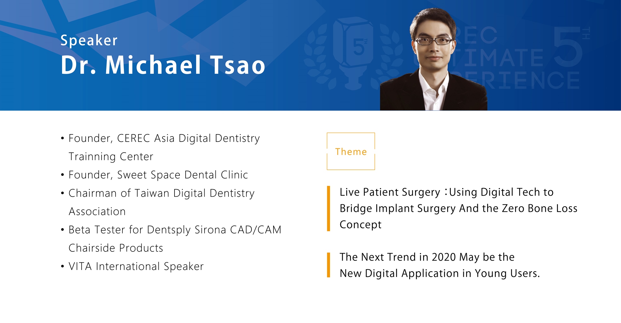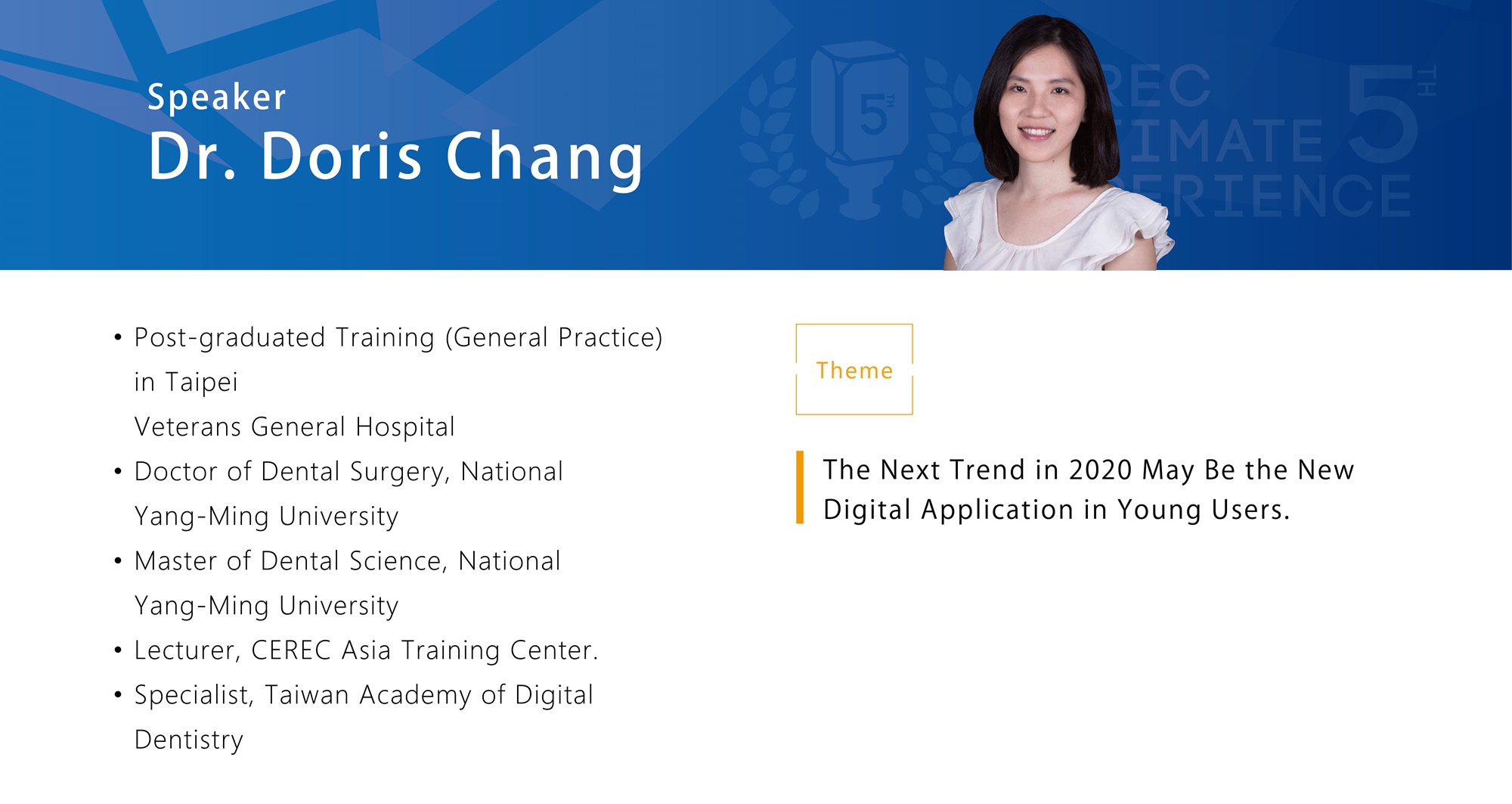 To support dentist and dental technician during the COVID-19 pandemic, the Digital Dentistry Association of Taiwan will facilitate the online digital dental conference: 5th CEREC Ultimate Experience.