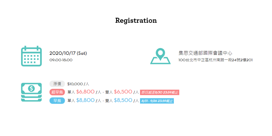 - 課程皆提供紙本電子發票,於開課當日提供,如需統編,請務必於報名時特別標注「公司統一編號」。