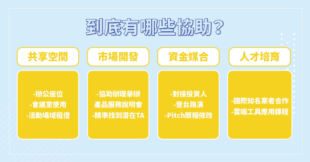 11 | 新創工具/服務推薦 | 提供電子發票、記帳/報稅、雲端辦公管理、CRM行銷數據平台等適合新創使用的工具,並爭取進駐廠商優惠方案 |