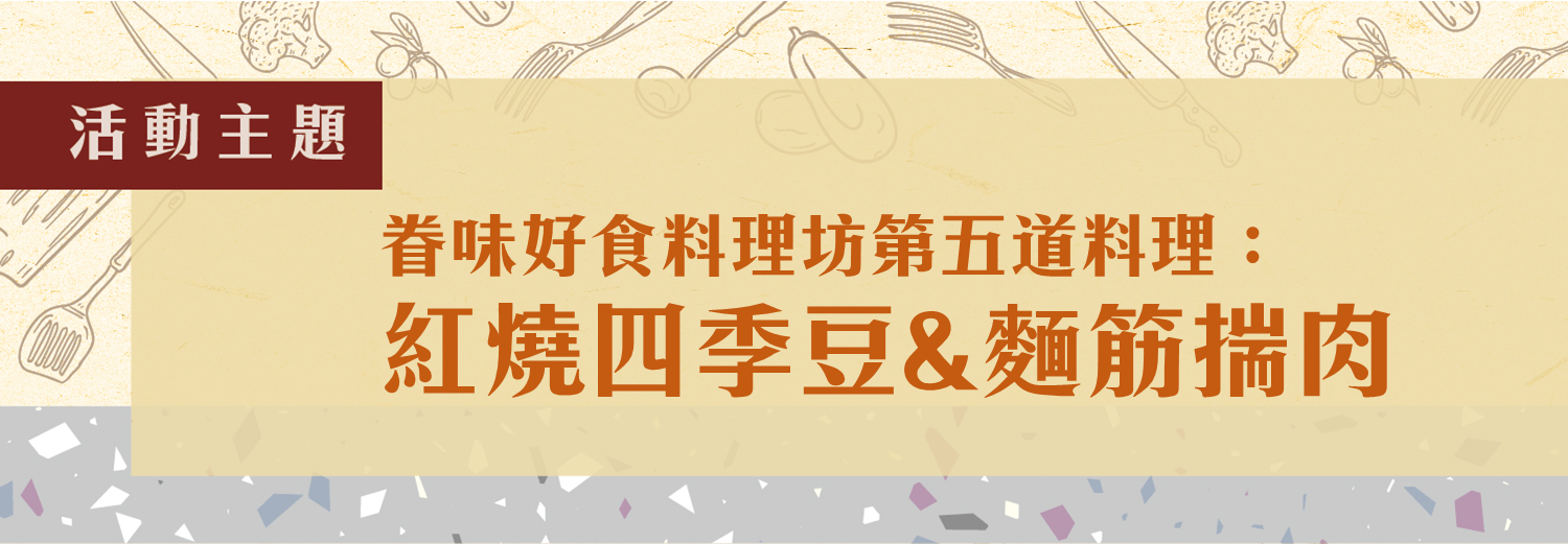 現在就趕快按下報名,就能品嚐到這道眷村料理-紅燒四季豆&麵筋揣肉,還能把這到眷村料理的訣竅學回家哦~