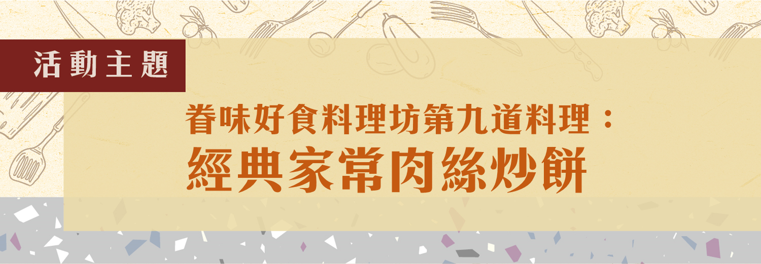 現在就趕快按下報名,就能品嚐到這道眷村料理-經典家常肉絲炒餅,還能把這到眷村料理的訣竅學回家哦~