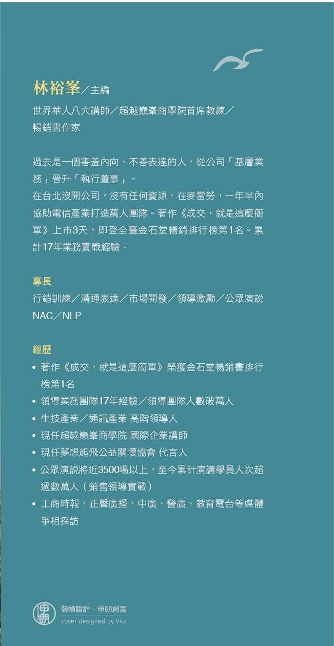 | 台灣微商教父・本書唯一的媒體名人,每日打拼只為助人圓夢。 | 呂世博 |
