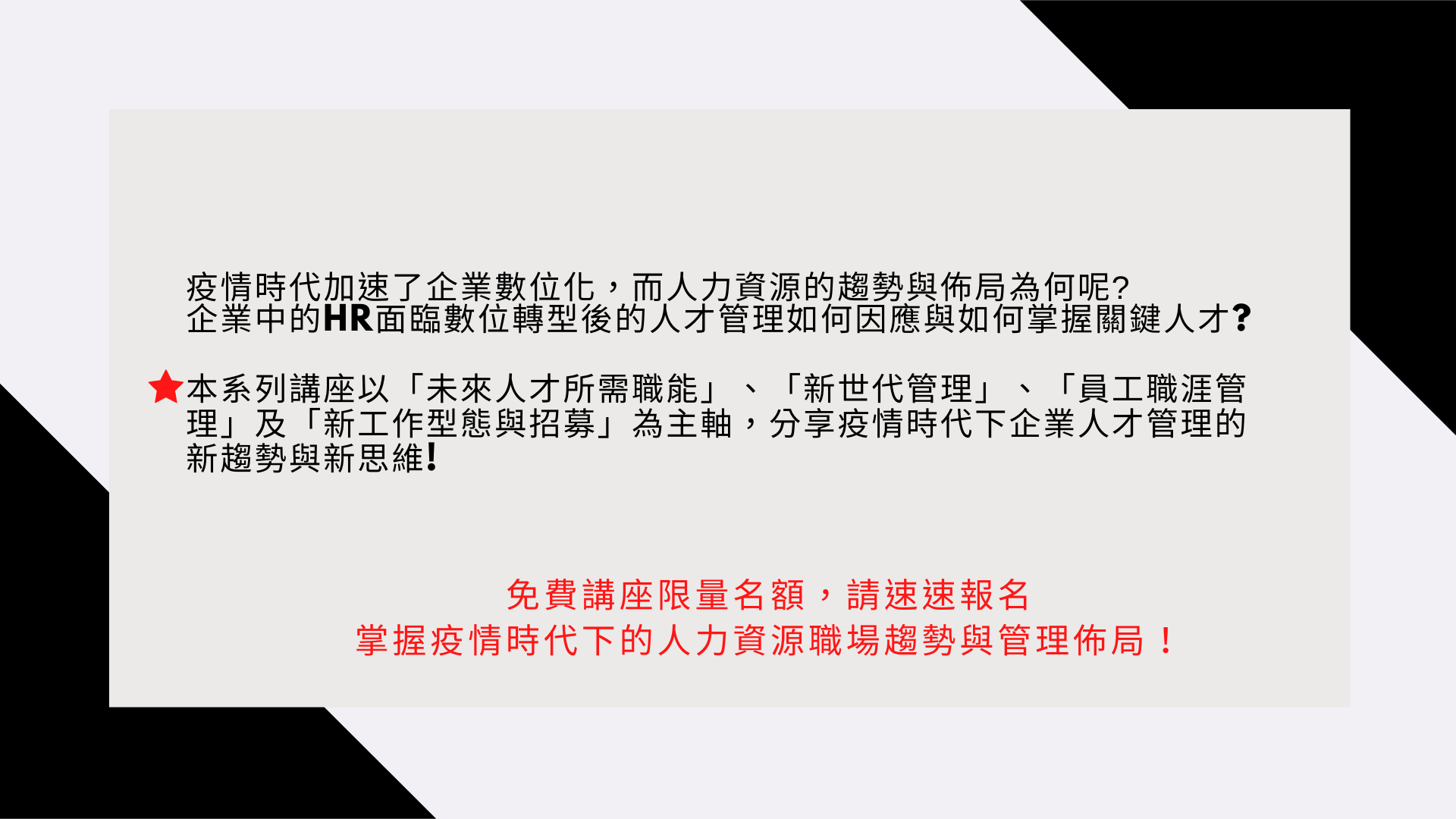 講座《系列四》 疫情時代,新型態工作模式與求職徵才新趨勢