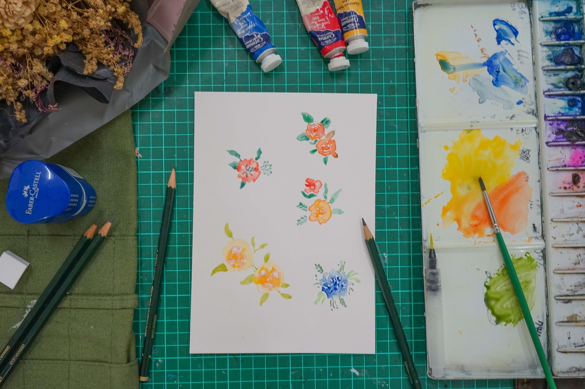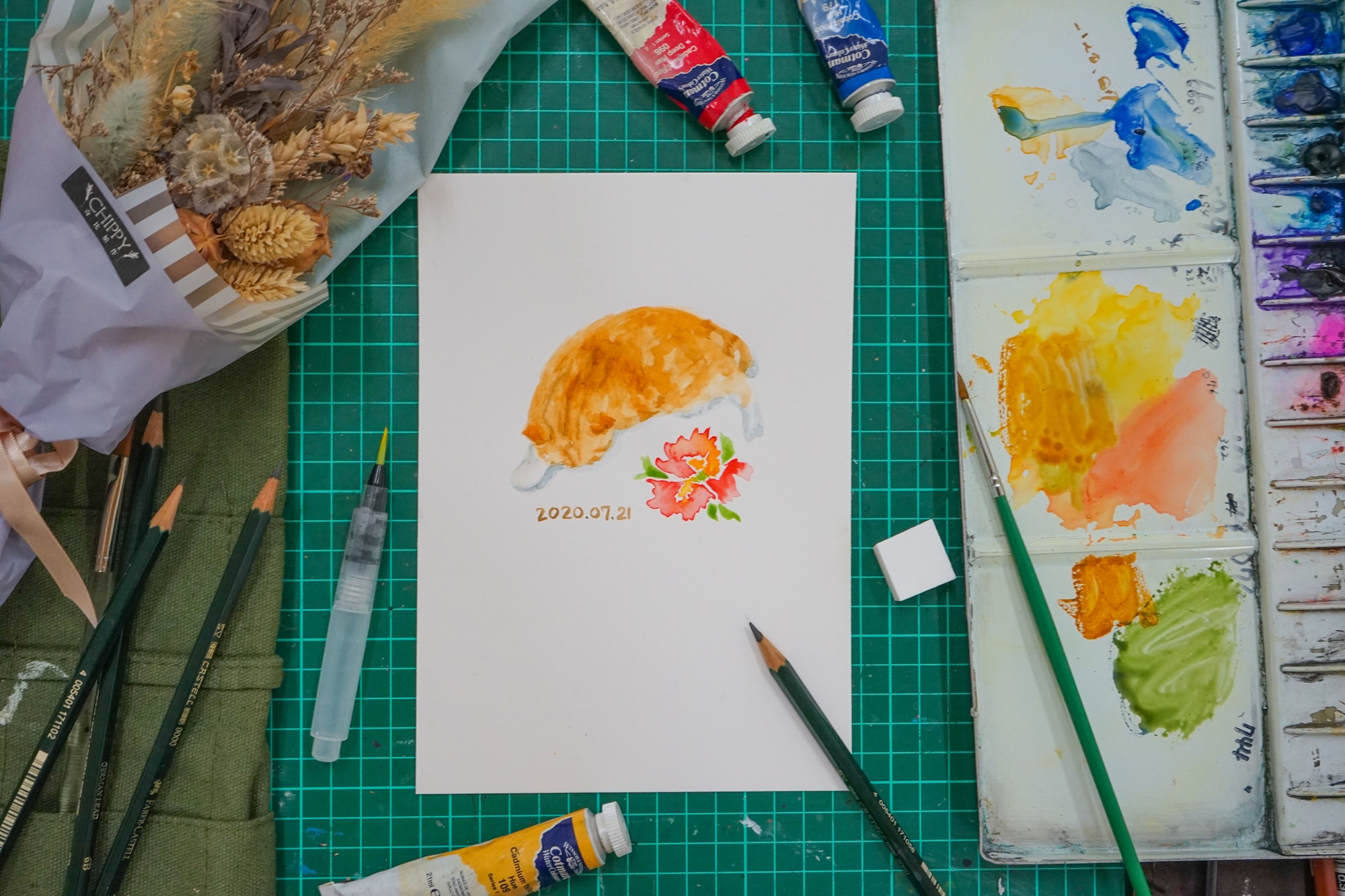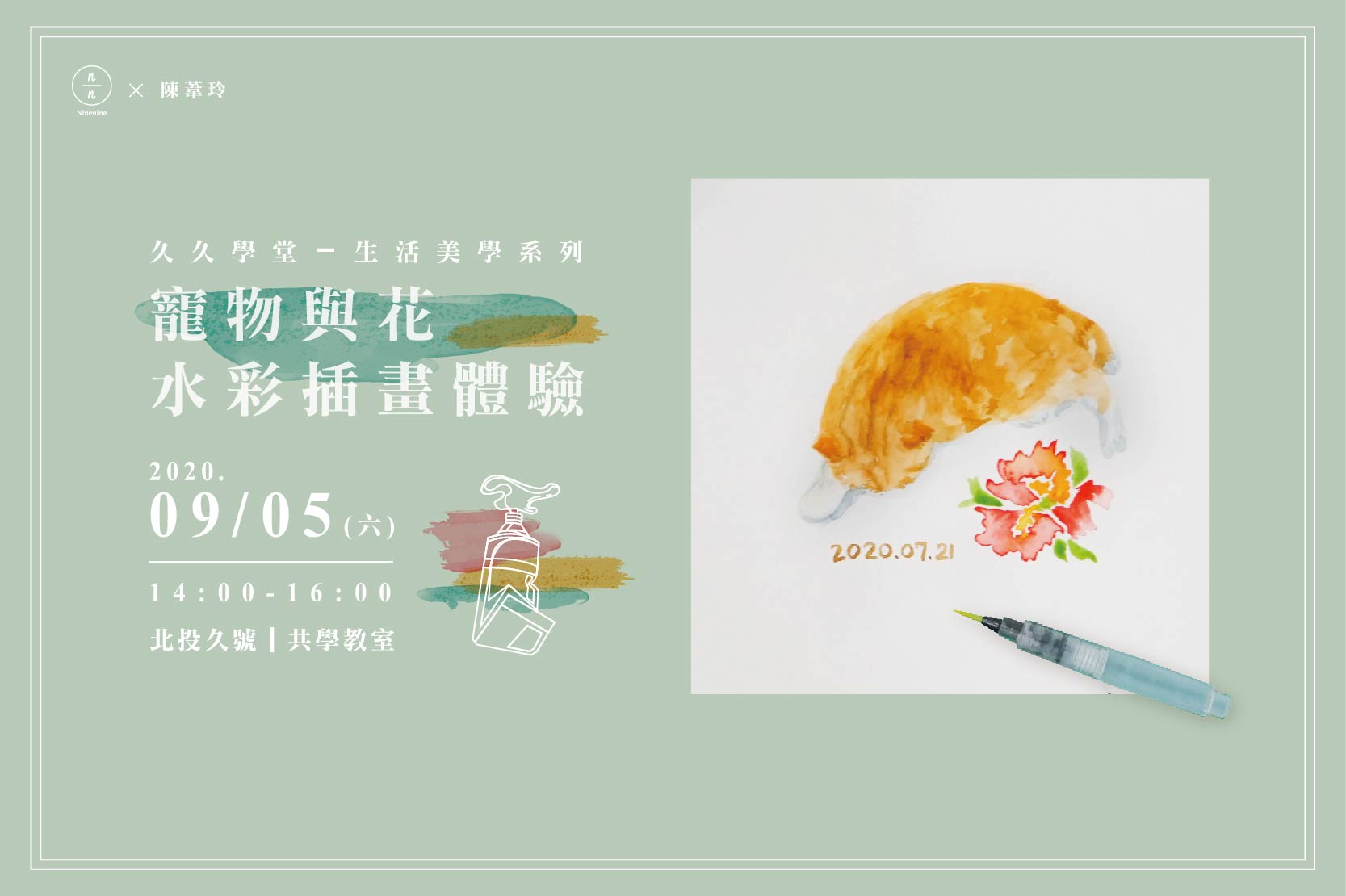 寵物與花水彩插畫體驗