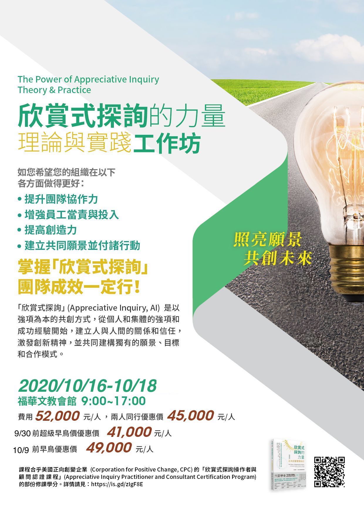 在為期3天高度體驗式工作坊中,您將會學習到「欣賞式探詢」的原理和實踐方法。