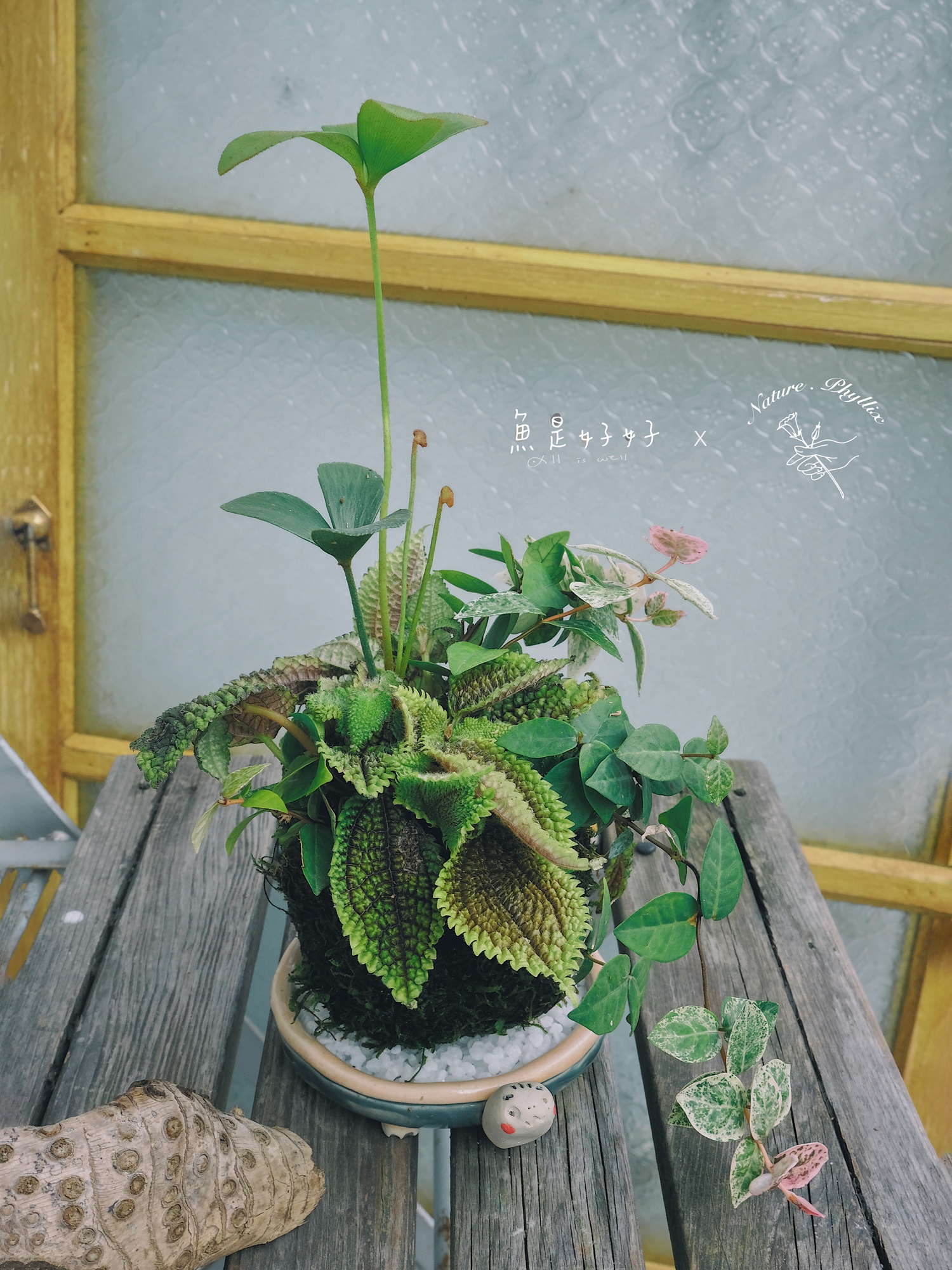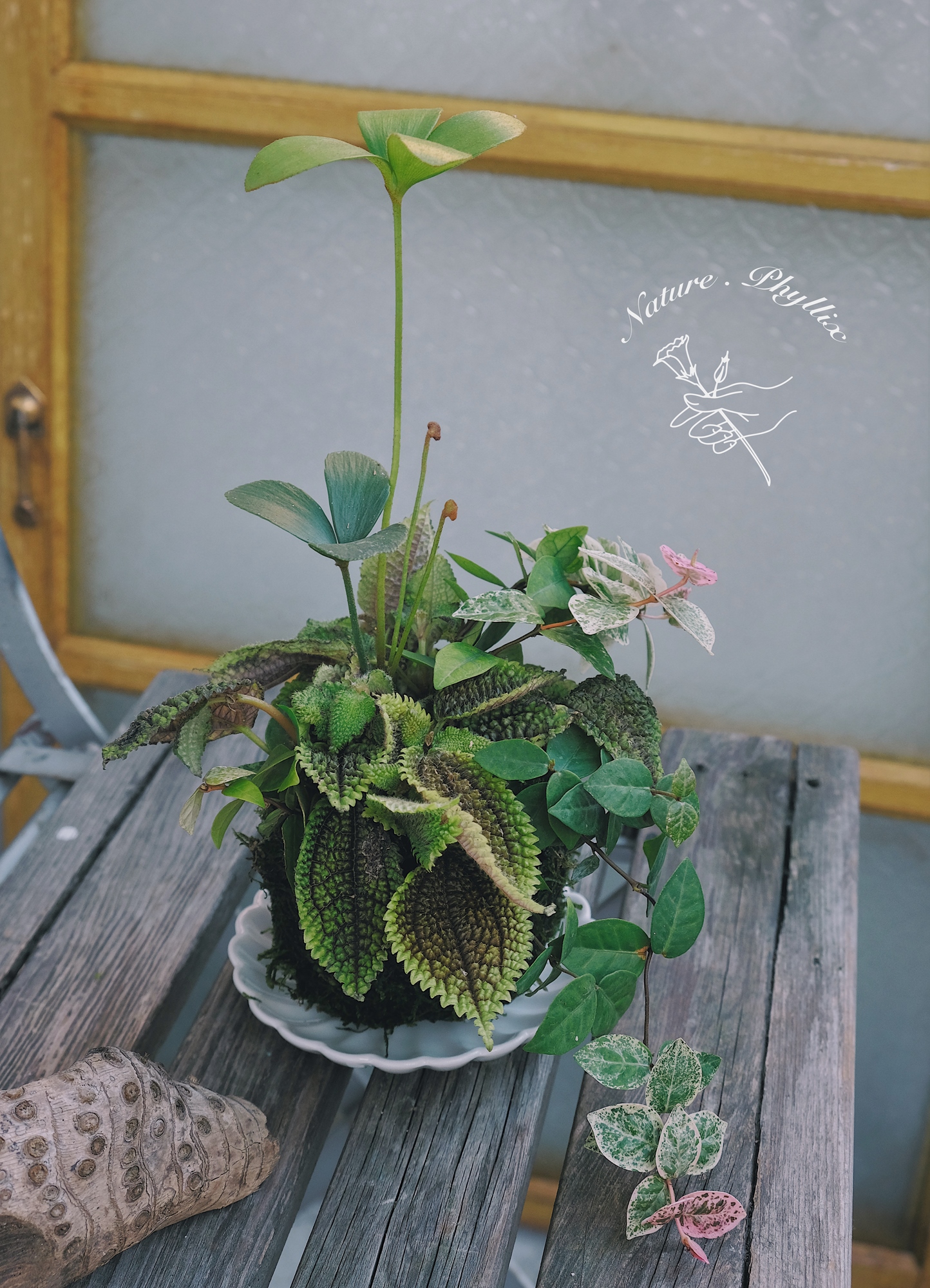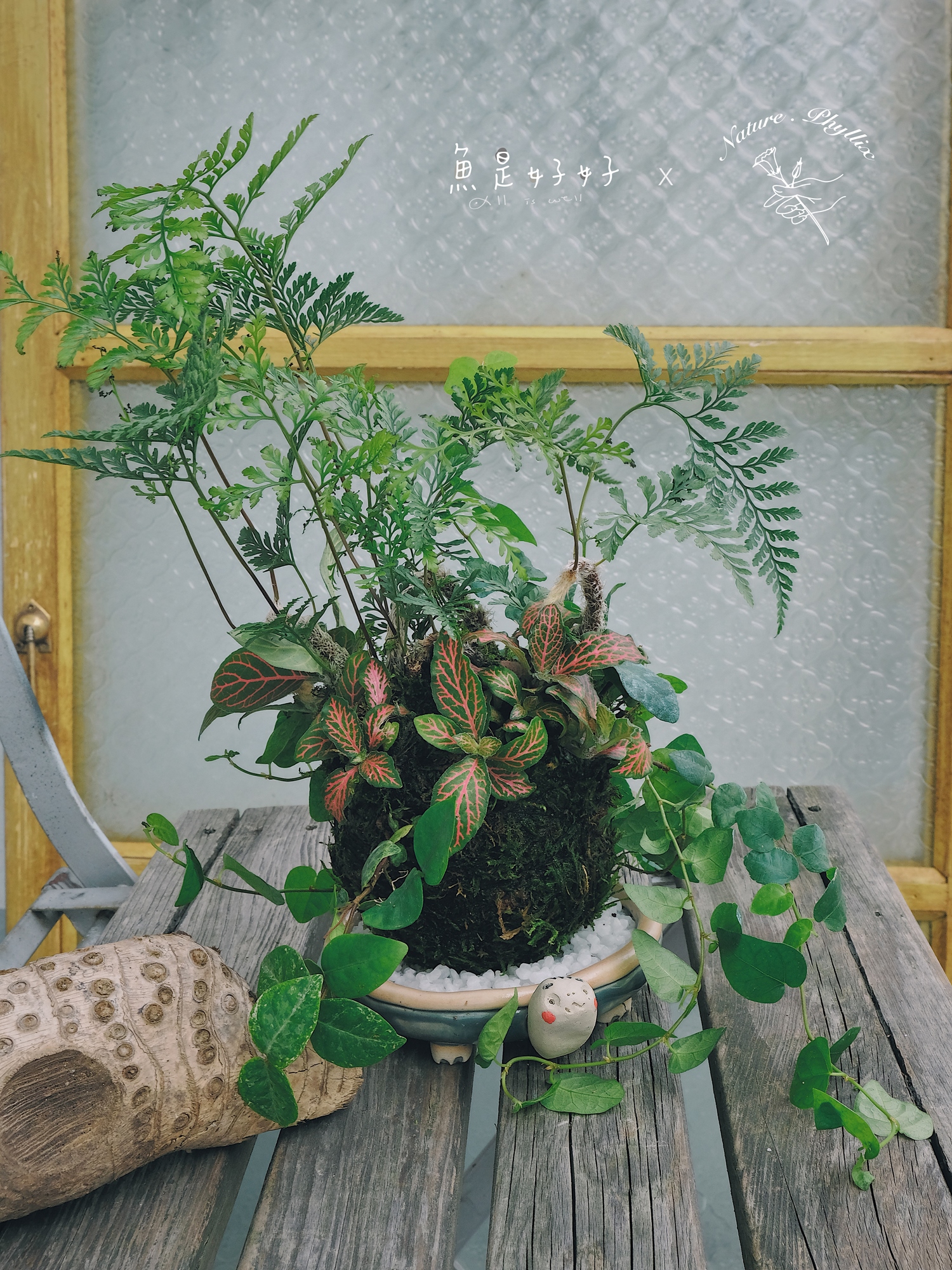 *苔球本體尺寸:直徑約10cm,高度則會因植物生長與配置而有所不同。