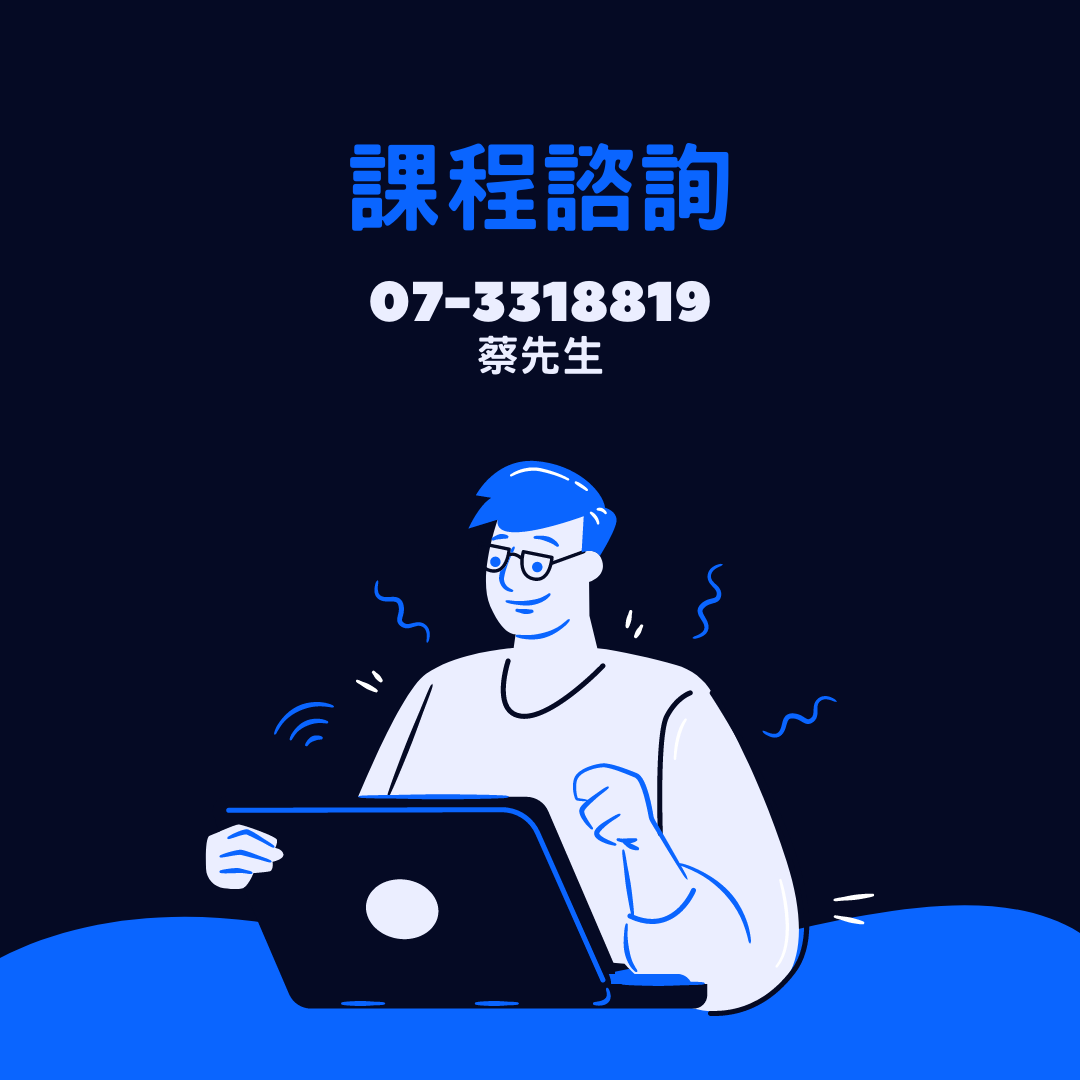 - 課程諮詢:週一~週五09:00-18:00請洽:(07)222-5615