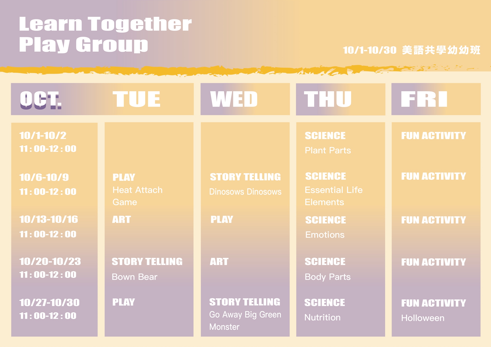 Brandon 與Karin 在3年前從紐約搬回台灣,在長子 Lucas出生後,他們決定在台灣定居,找尋各式的共學課程裡,身為台灣人的 Karin覺得,如果在中文生活環境裡,如果也能讓 Lucas 也有美語的共學玩伴,應該也是一件很酷的事。