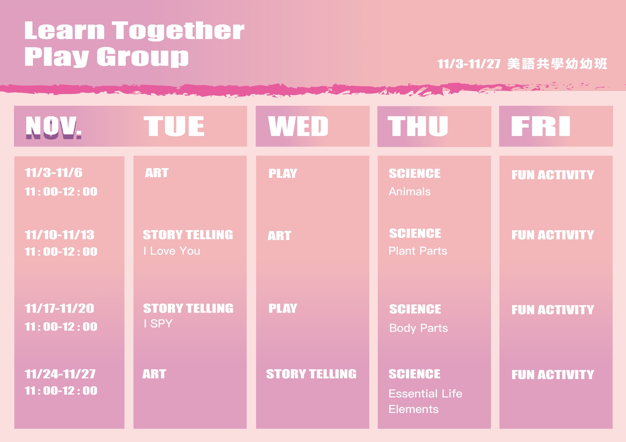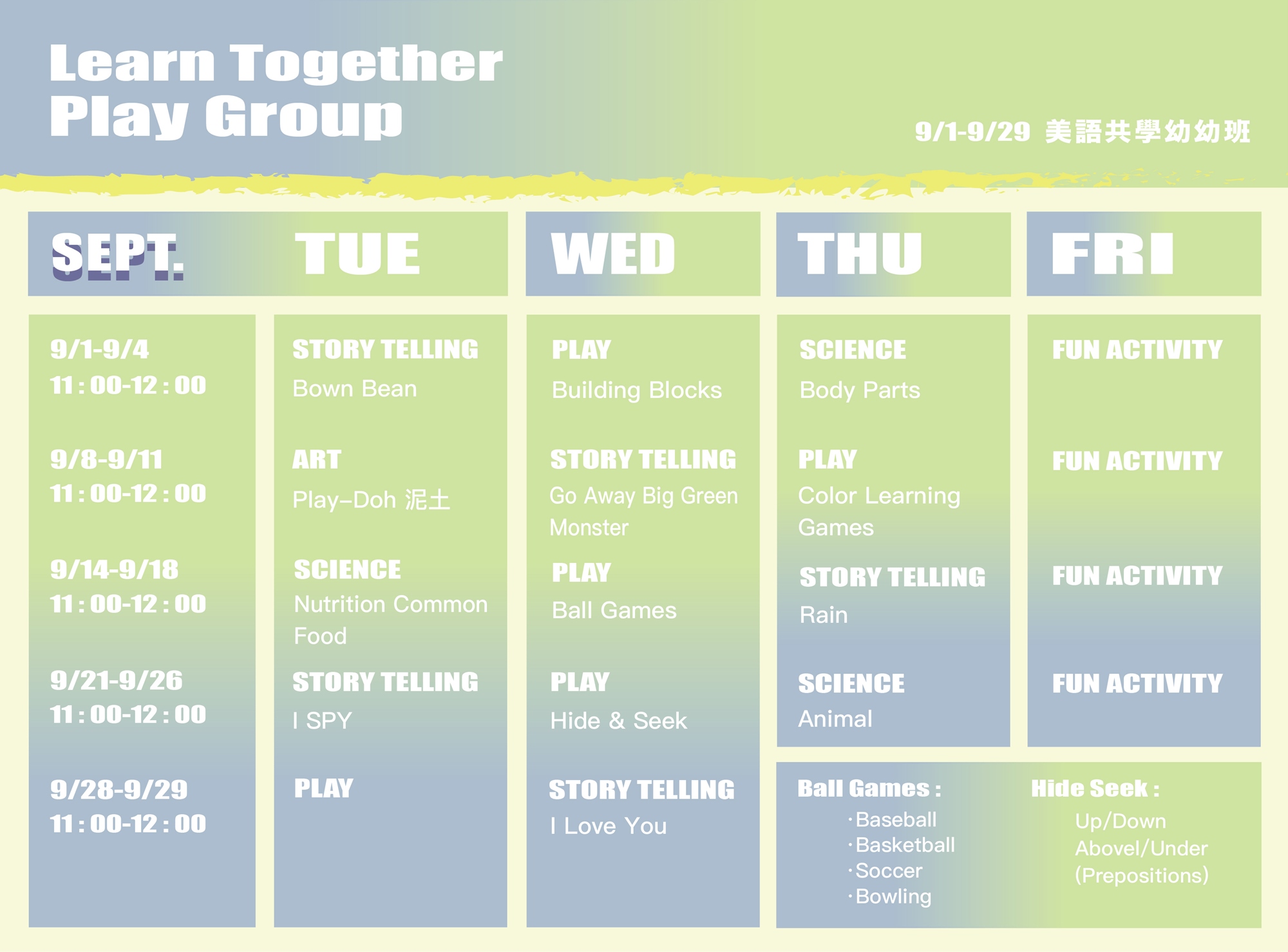 讓小小孩以遊戲共學與閱讀繪本導入自然發音、顏色、數字、形狀,和日常用得到的單字,打招呼的習慣用法,讓小朋友起步在最佳的學習時機!!