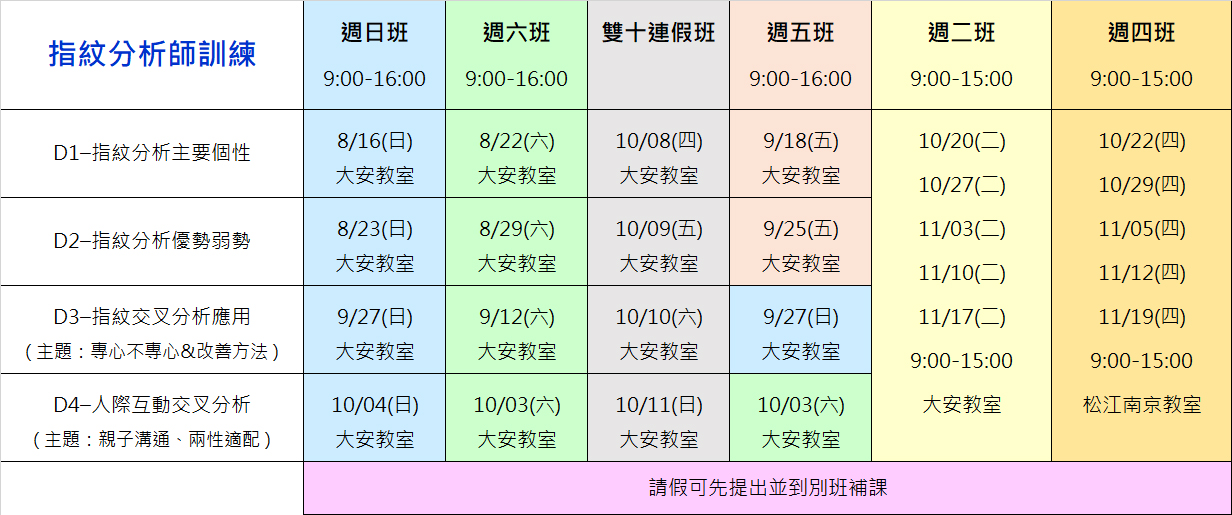 週日班 2020年8/16、8/23、9/27、10/04, 週日09:00-16:00.