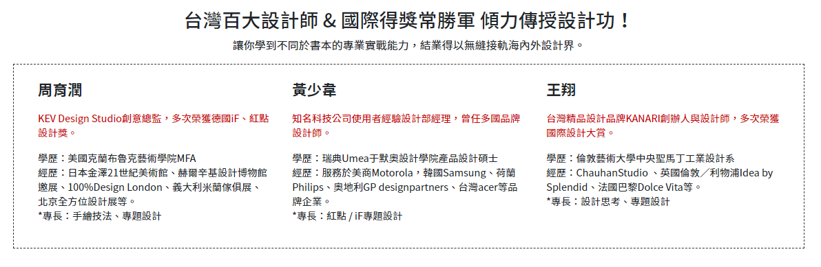 國內最具指標性的設計教學,提供快速銜接海外工業產品設計系捷徑