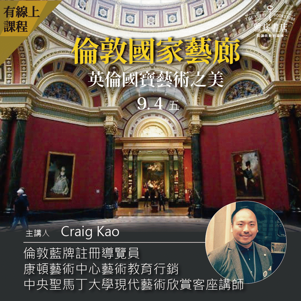 這一次由倫敦的藍牌導覽員Craig(小高老師),幫你解開國寶畫作背後的神秘面紗,輕鬆解開生澀的藝術詞彙,帶你看到繪畫的美和背後的世界。