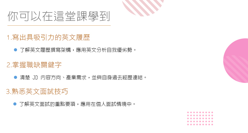 講座結束後,將抽出5名幸運觀眾,將獲得講座講師幫您進行履歷健檢