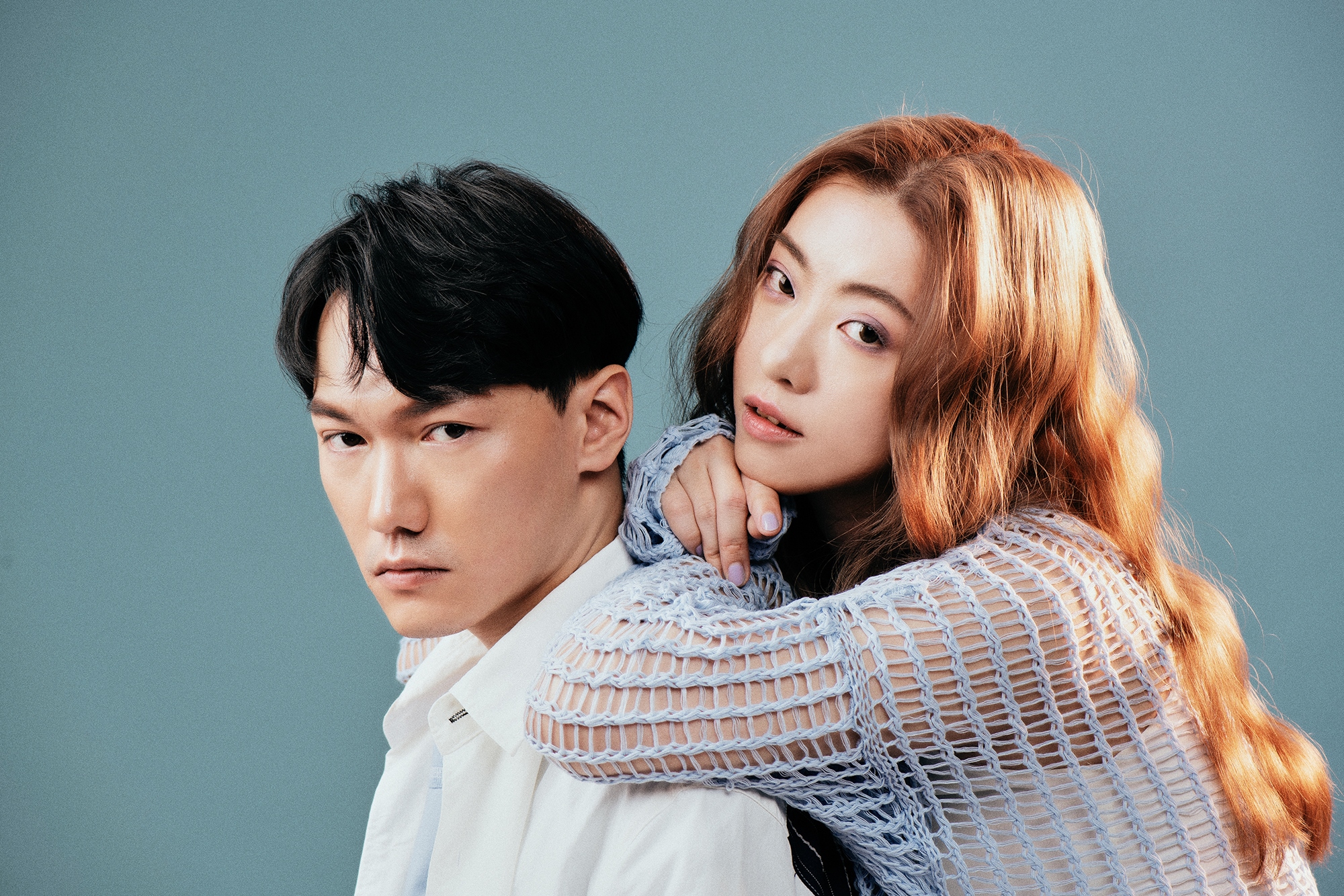 兩人肩並肩,一人戴著一邊耳機聽著同一首曲子
