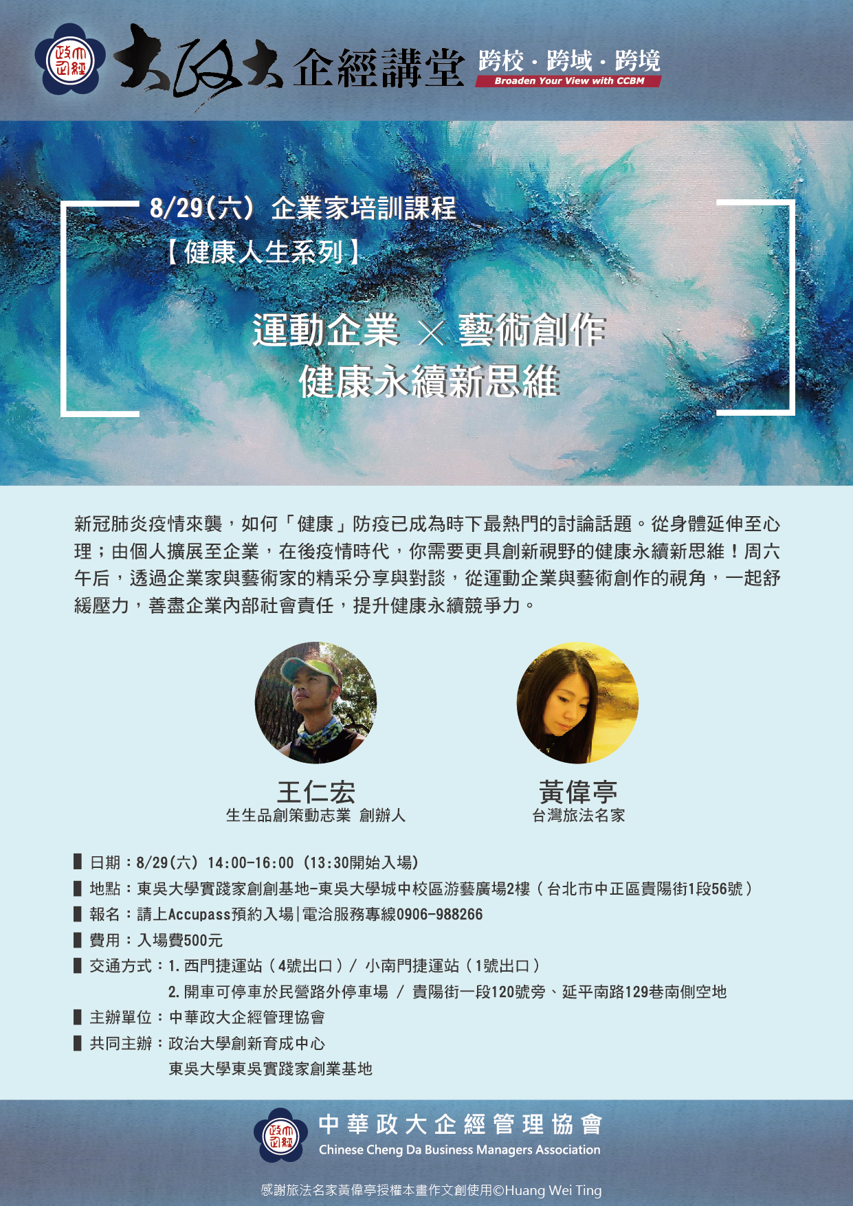 講師:王仁宏執行長(生生品創策動志業)、黃偉亭藝術家