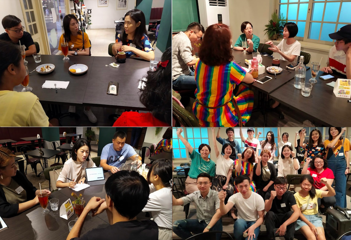 回到真實世界,這段時間,不分男女老少、職業類別,討論有興趣的主題,可能是旅行、環保、商業、創作等,一起腦力激盪。