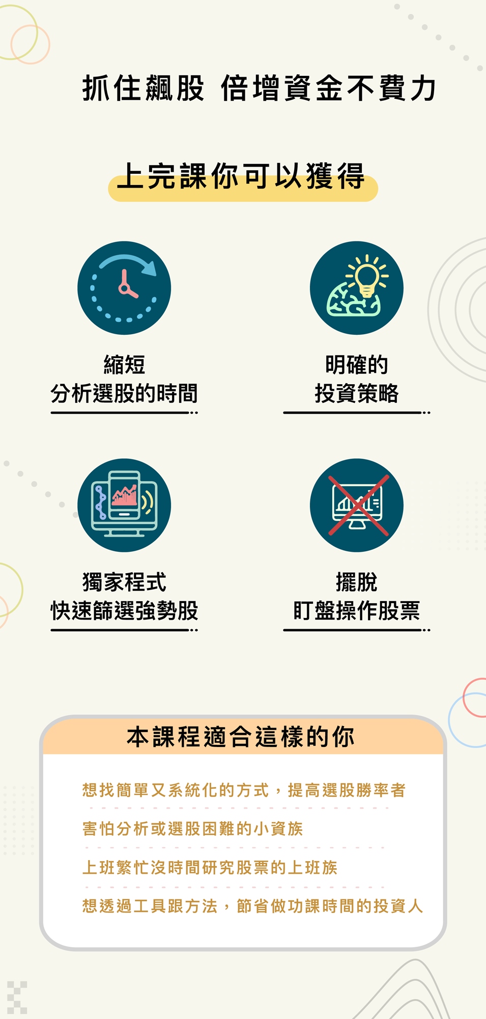這堂課程將從「完整學會投資股票期貨」的角度出發,照顧投資者的需求和解答投資疑惑。