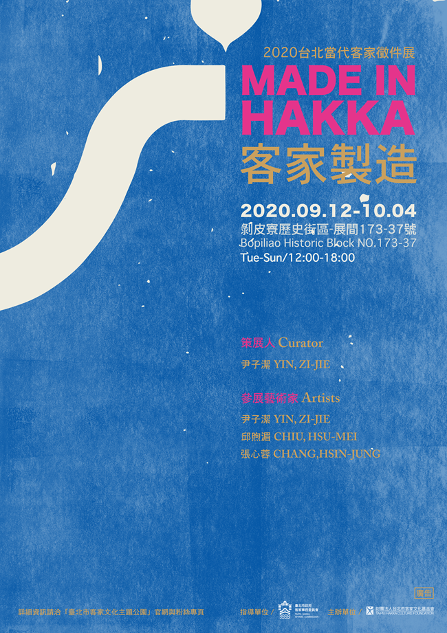 台北市客家文化基金會為推動當代客家藝術,今年首次辦理策展徵件計畫,期望能以更貼近當代的觀點,鼓勵致力於客家的策展人/創作者,從不同視角、多樣媒材、跨界創新等方式,給予大眾更多不同的思考方向。本年度將於剝皮寮歷史街區展出《客家製造(M.I.H)》以及《秋陽,風起,凝結的糖》,期待給您不一樣的台北客家!