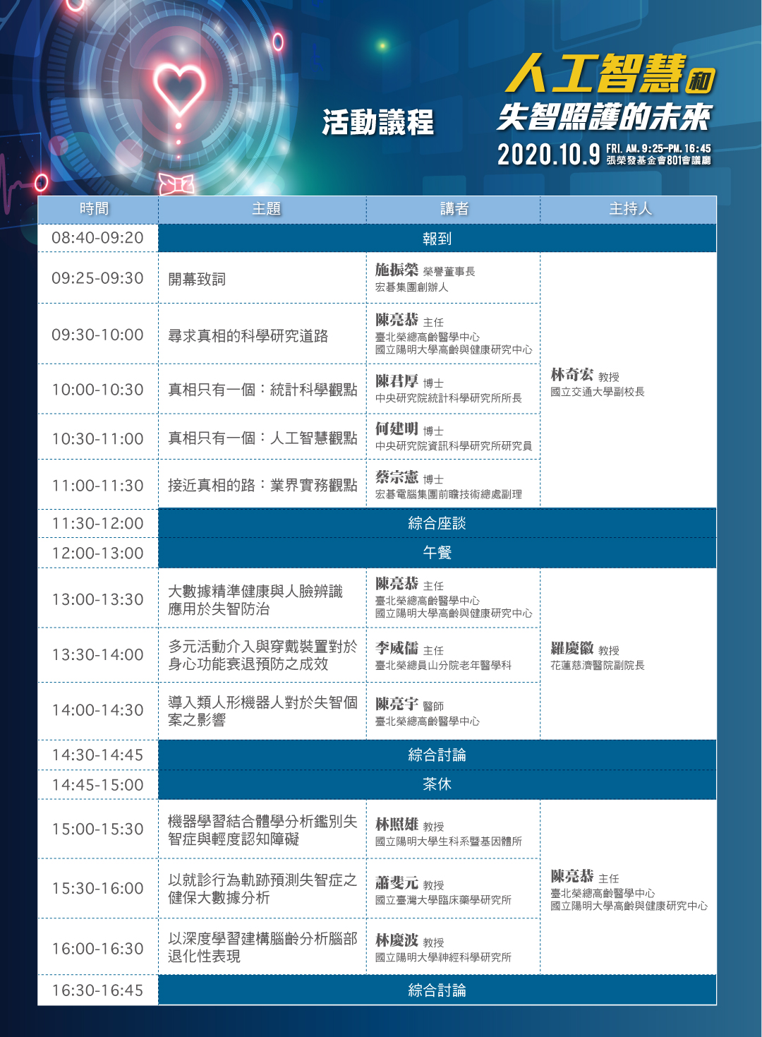 主辦單位:臺北榮民總醫院高齡醫學中心、國立陽明大學高齡與健康研究中心、台灣整合照護學會、科技部人工智慧生技醫療創新研究中心