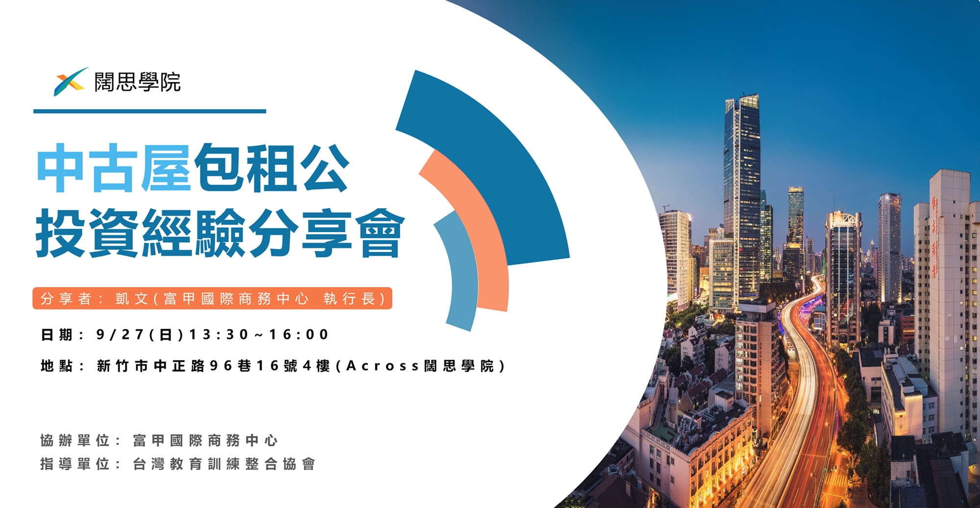 本次分享會特別邀請《富甲國際商務中心》執行長凱文,來和大家分享他過去的中古屋投資收租經驗!這是一場單純的分享會,將不會推銷任何房地產進階課程,也不會介紹任何投資案件,大家可以放心參加~