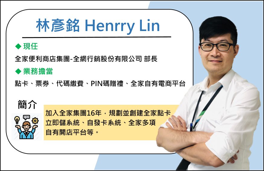 本次活動將邀請到全家電商服務部部長 林彥銘,分享他多年的電商經歷,