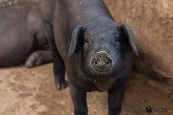 他們飼養的「台灣本土六堆黑豬」,比一般的白豬多花三倍的時間養成,油花與瘦肉分布均勻、香甜且無腥味、且不含任何瘦肉精!