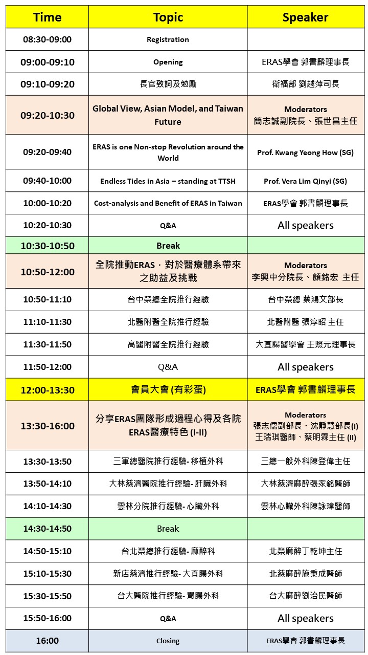 - 由於ERAS是結合健保及自費項目,可以提供更優質的病人照護品質,而且改善醫療從業人員的工作氣氛。