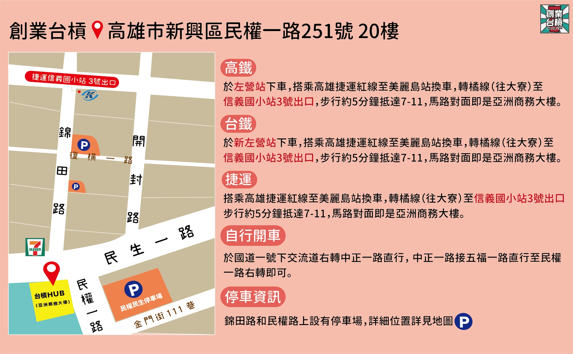 - 位置|高雄市新興區民權一路251號20樓(台槓創新HUB)