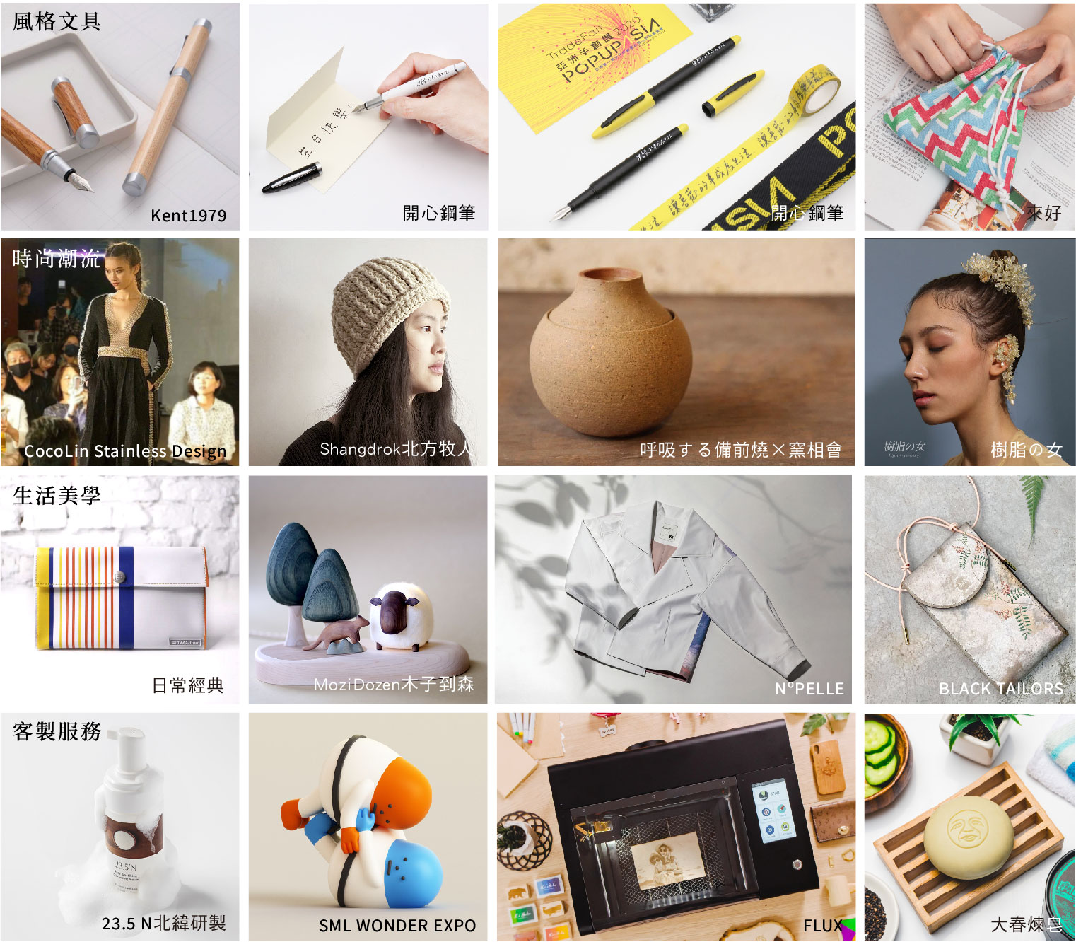 本區可以說是手作創業者的堅強後盾,由優質材料商、製造商、在地工坊、小型製造機具所構成,全面性發現台灣小型製造業的強大生命力,從CNC金屬加工、紙品、線材纖維、蕾絲、台灣工藝、到亞洲公平貿易商店,你絕對可以找到最適合你的合作夥伴,從台灣出發鏈結國際市場。