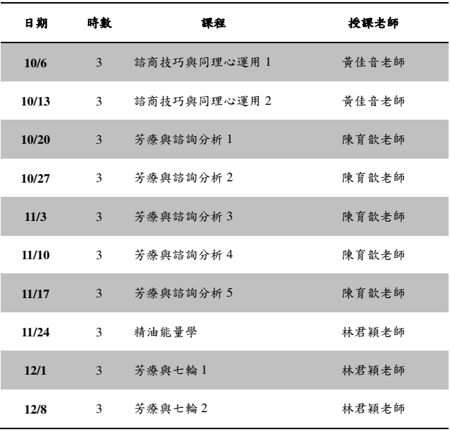 美國NAHA芳療高階課程之芳療諮詢與心理運用課表如下: