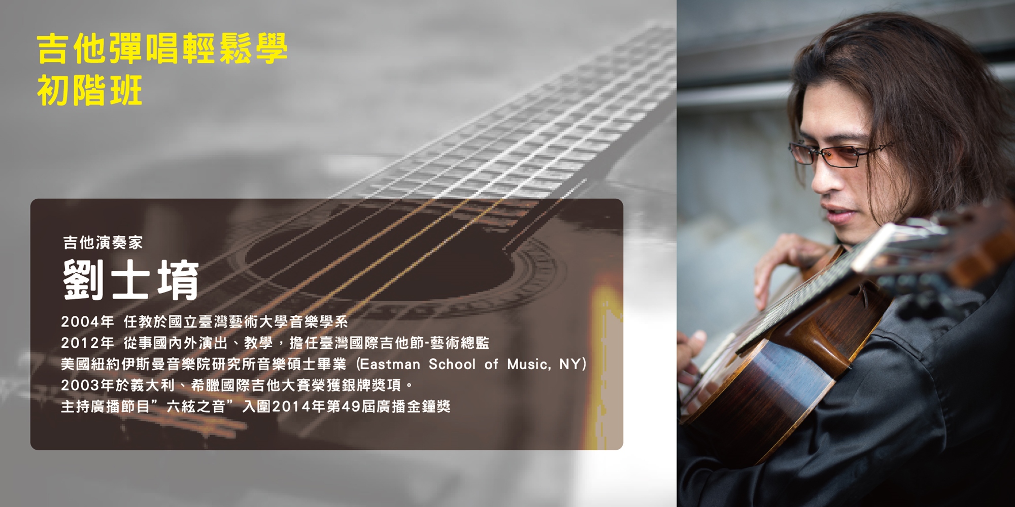 吉他是個迷人又受歡迎的樂器,不只可讓我們在生活中與三五好友共同彈唱,也能讓我們在獨自享受一人悠閒的樂趣。在本課程當中,將輕鬆教授入門必學的簡易和弦,配合上右手的幾種基本演奏指法,彈唱出許多世界民謠及經典名曲等。