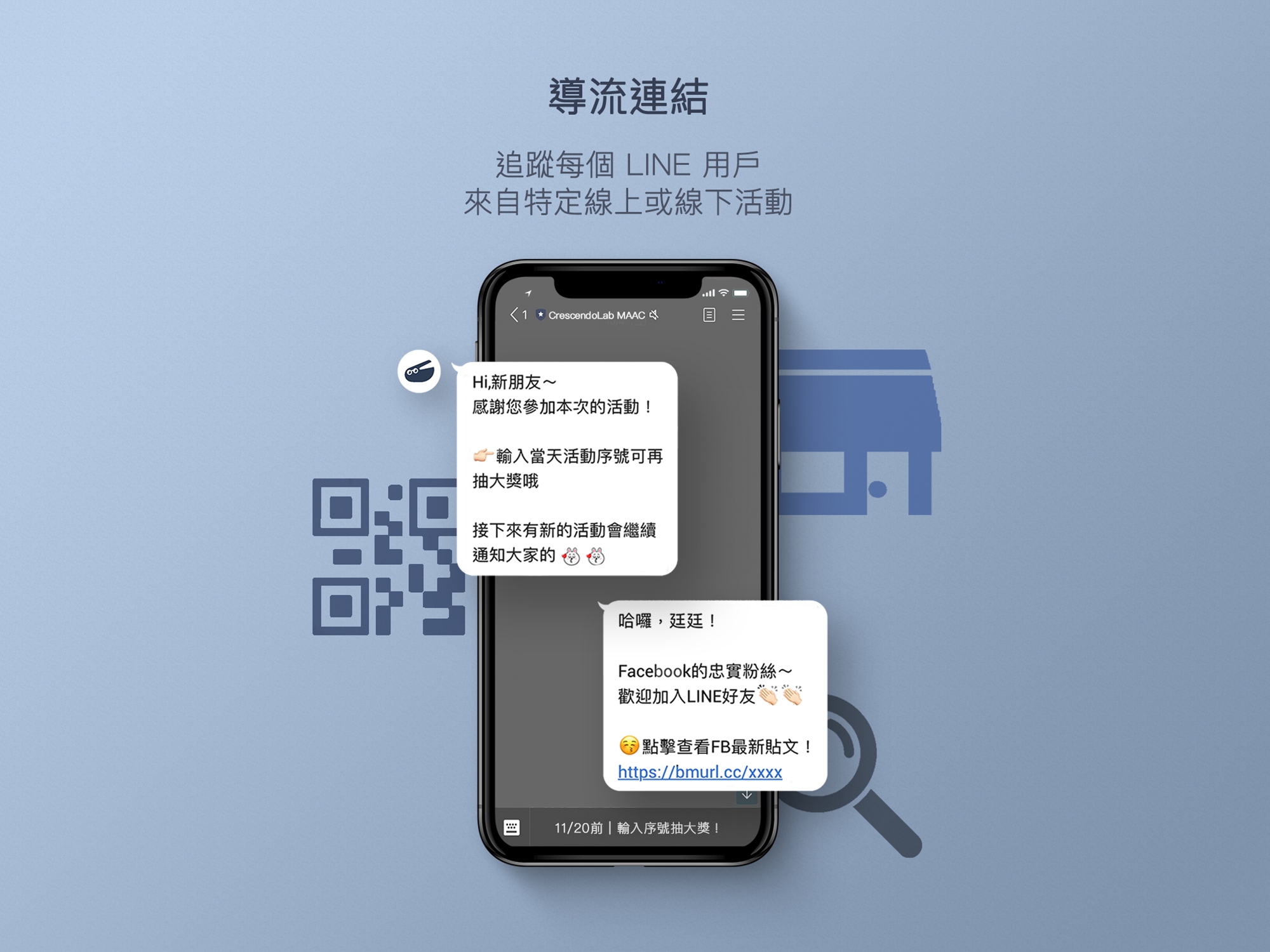 - 導流連結——知道你的粉絲從哪裡來:追蹤每個 LINE 用戶,來自特定線上或線下活動