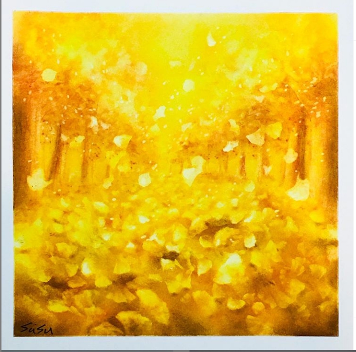 是天使飛過,遺落的羽毛嗎?把這片樹林都染成了金黃色