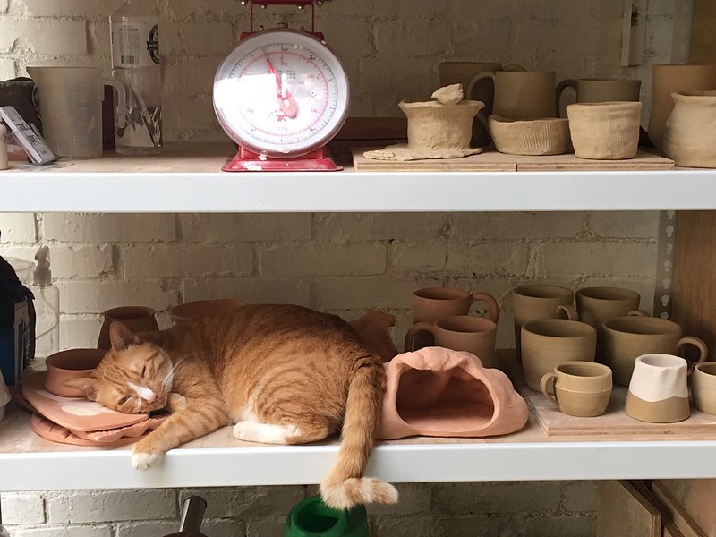 在地陶藝工作室、簡單的材料融入每個人的創意,雖然只有三種顏色卻能變出千變萬化的產品,透過黏土的塑形過程透過搓揉、塑形、繞曲、擠壓、創造出屬於自己獨有的盤子,盤子做好了壓力不知不覺隨風而散了,工作室也有三隻貓咪,陪你度過療癒的下午,貓奴們別錯過了~