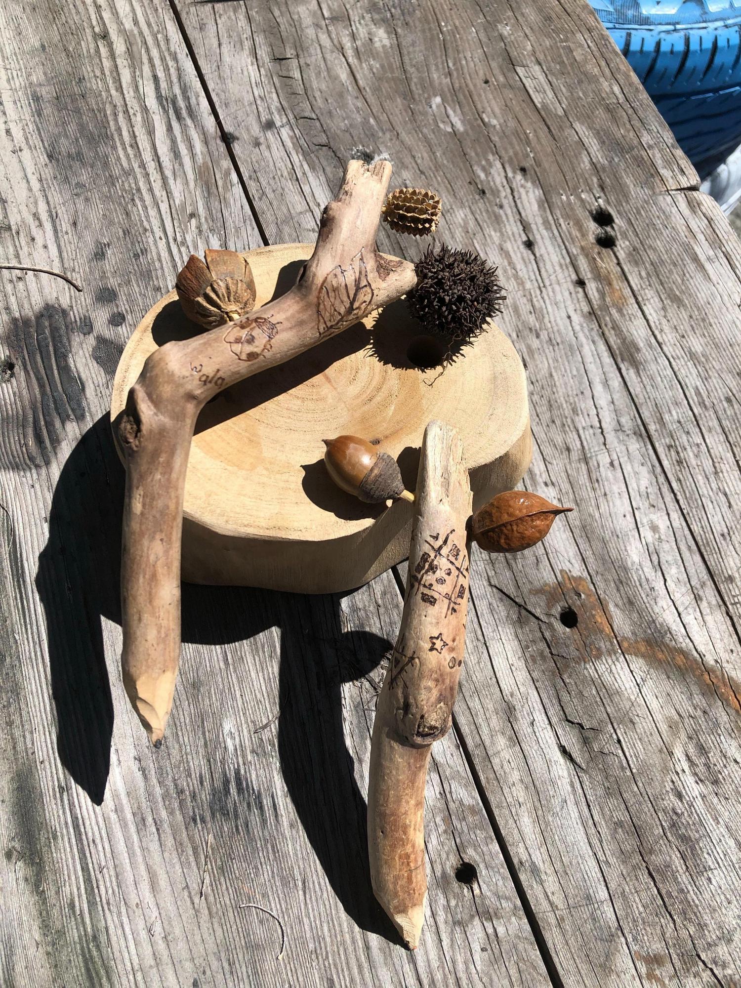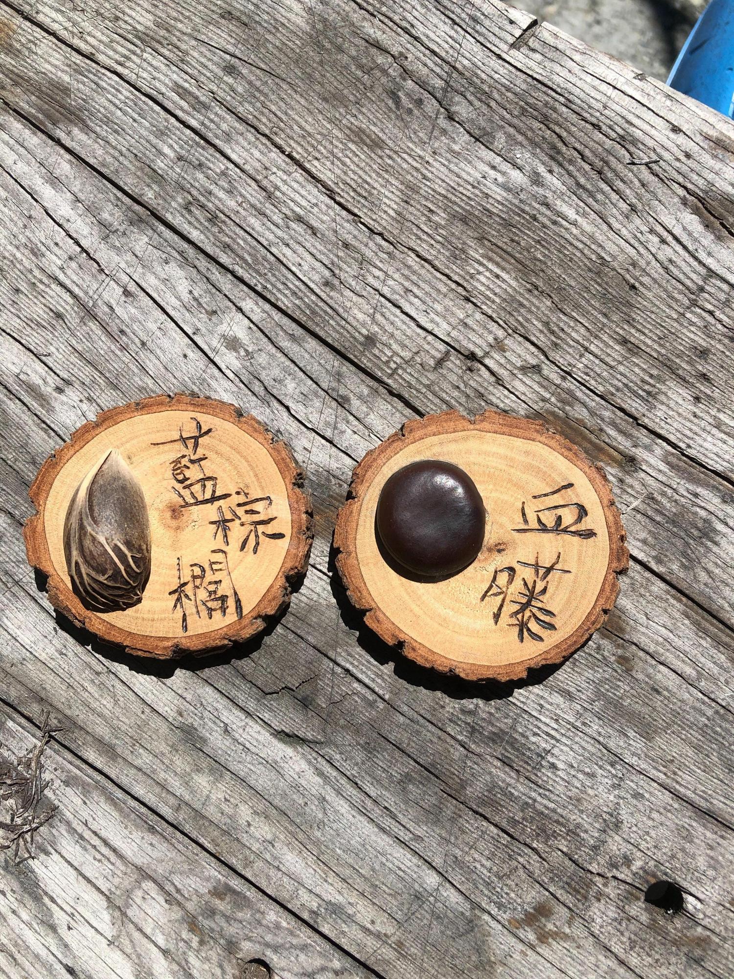× 漂流木筆能電烙上文字,再來把木片寫上果實姓名。