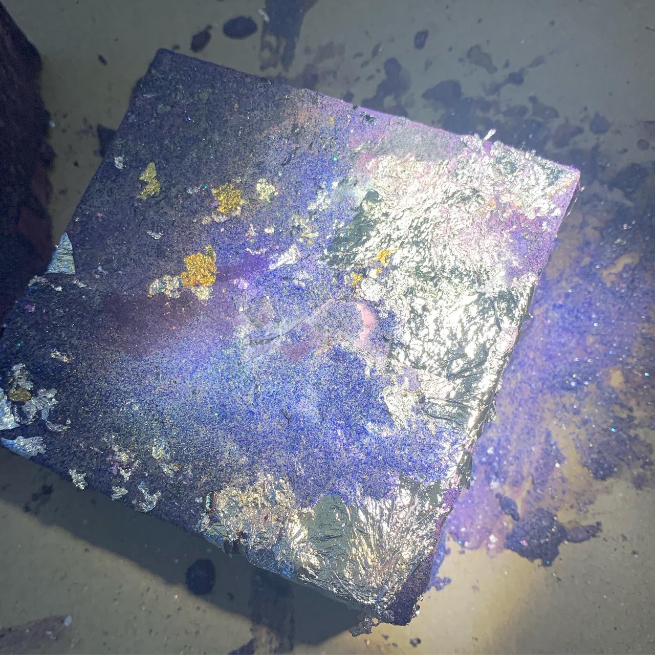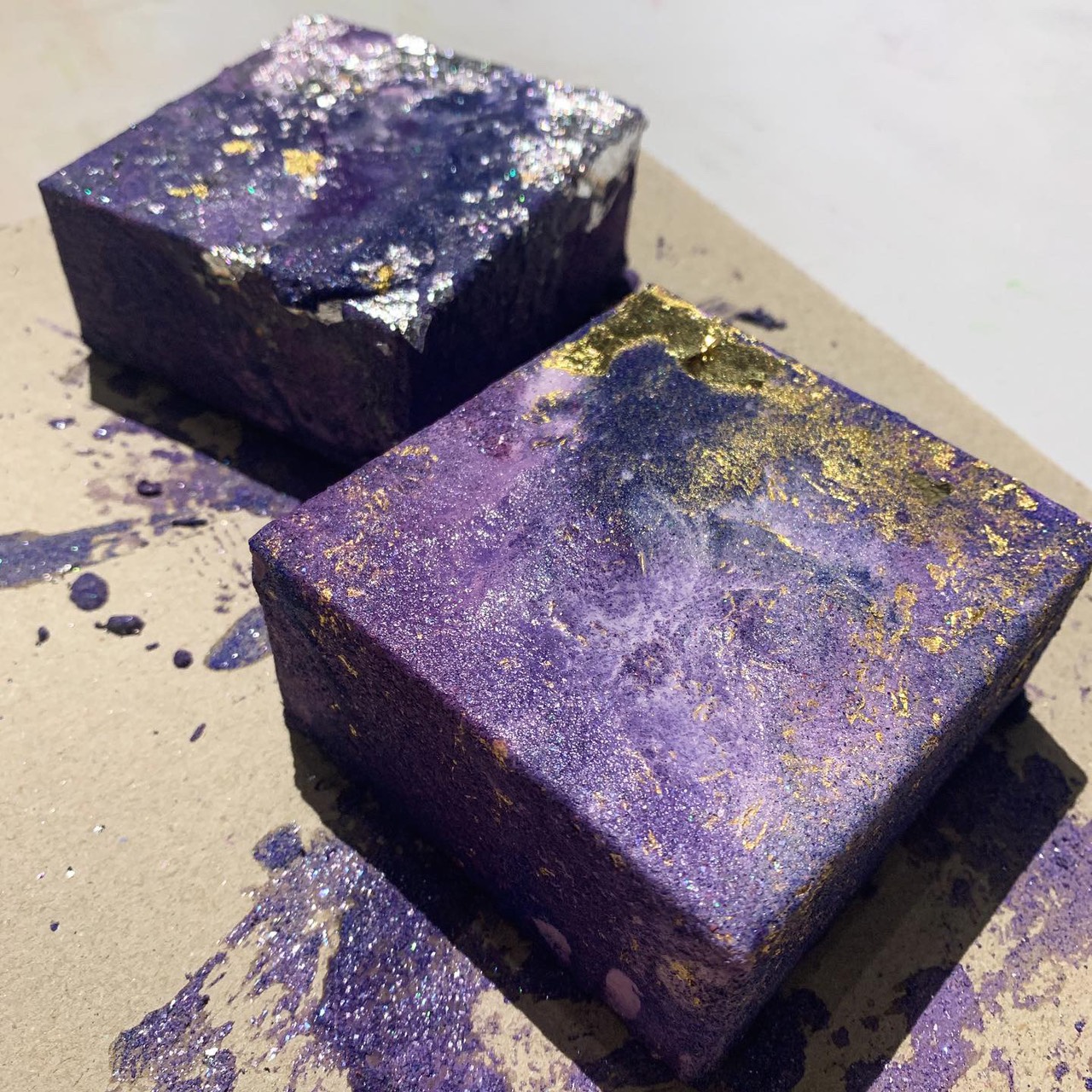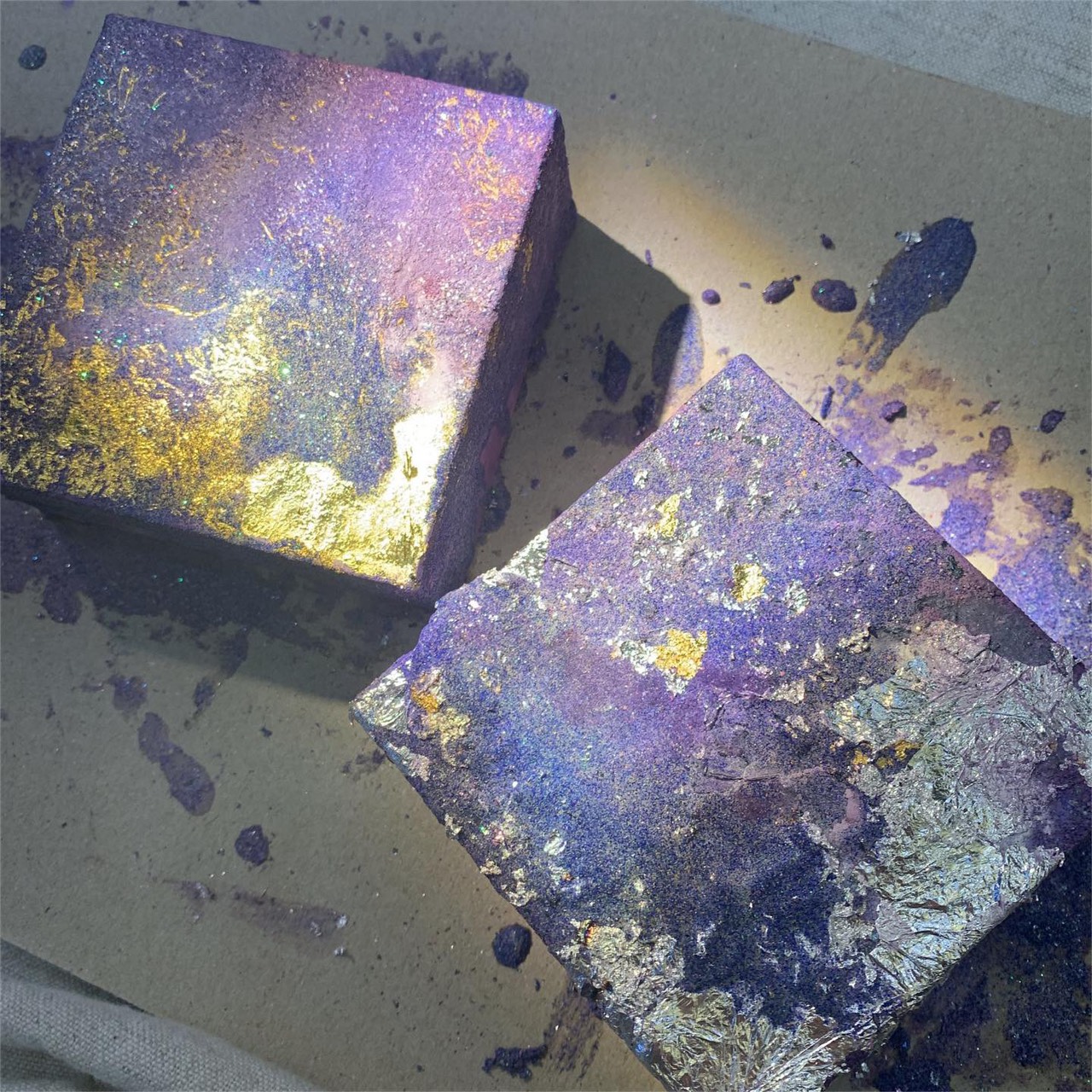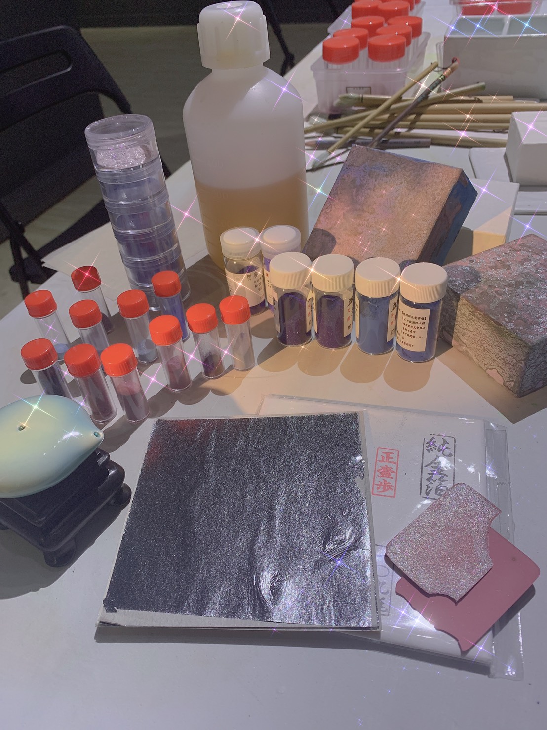 在課程中,學員可自由選擇喜愛的岩料,搭配銀箔或金箔,將這些金屬礦物重組成自己親手創造的藝術寶石💎