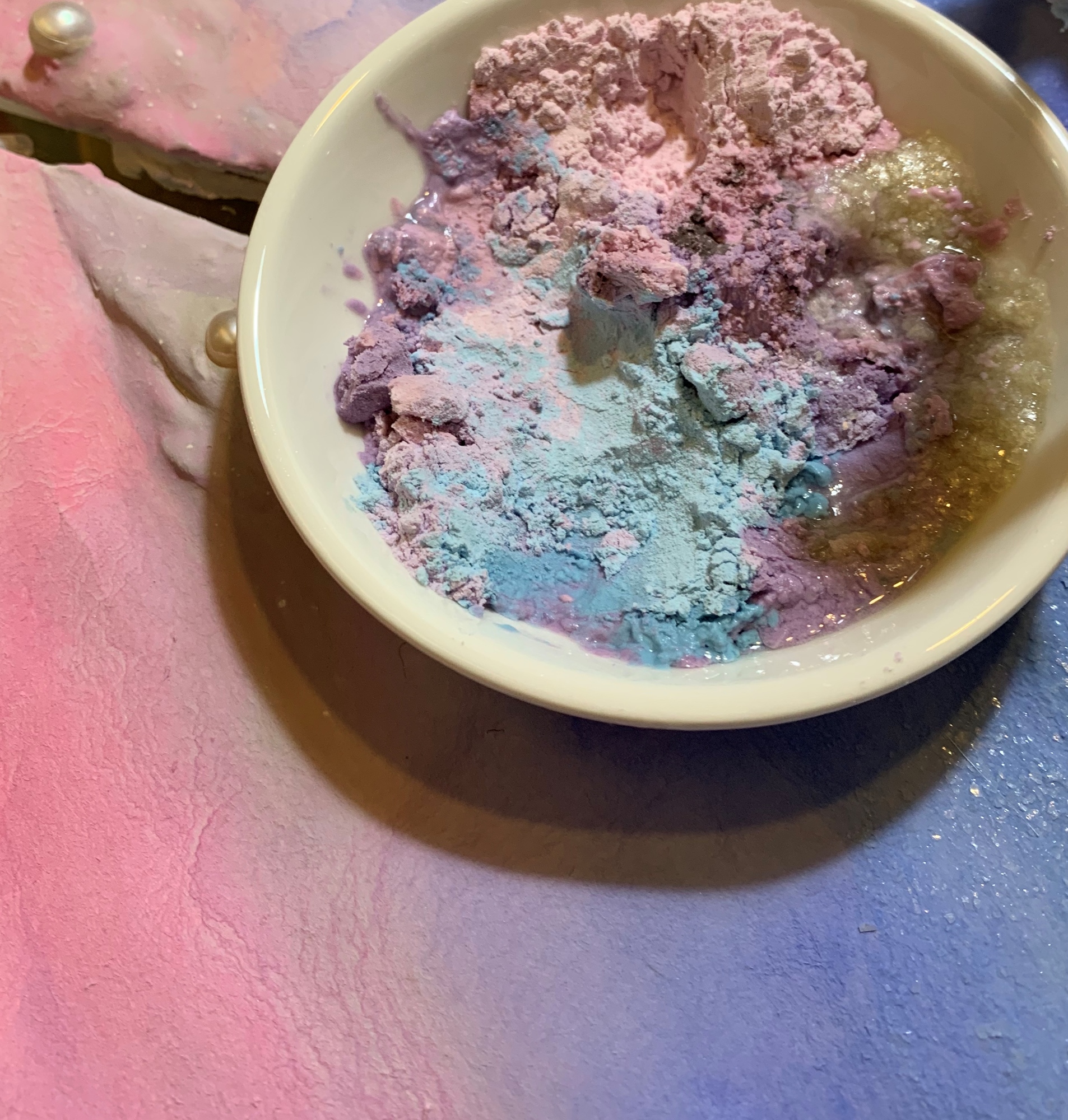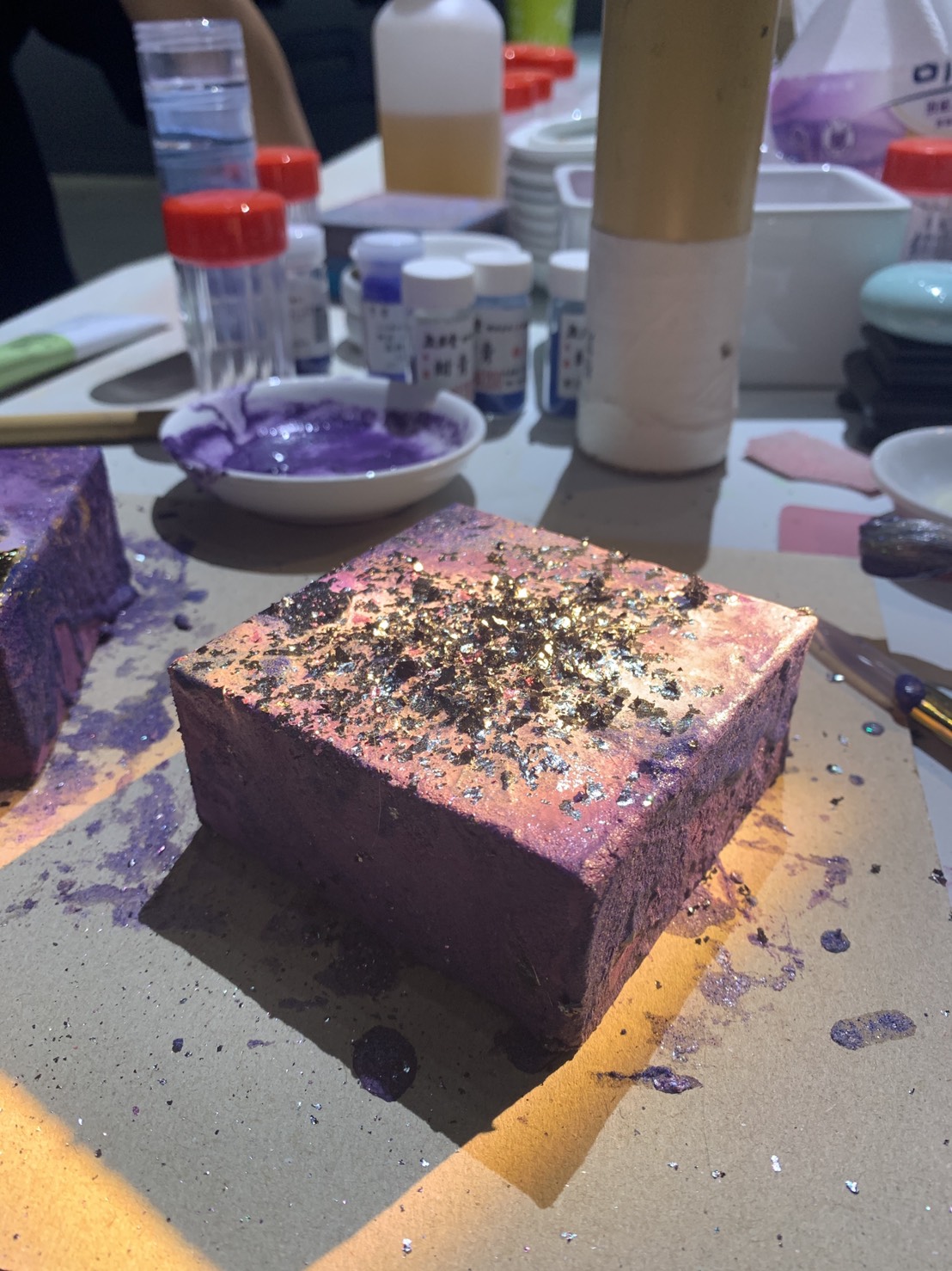 礦物岩的晶體會呈現閃閃發光之視覺效果,特殊的媒材;難得的體驗。又因礦物本身為天然材質,體驗中所創作的作品永不褪色。