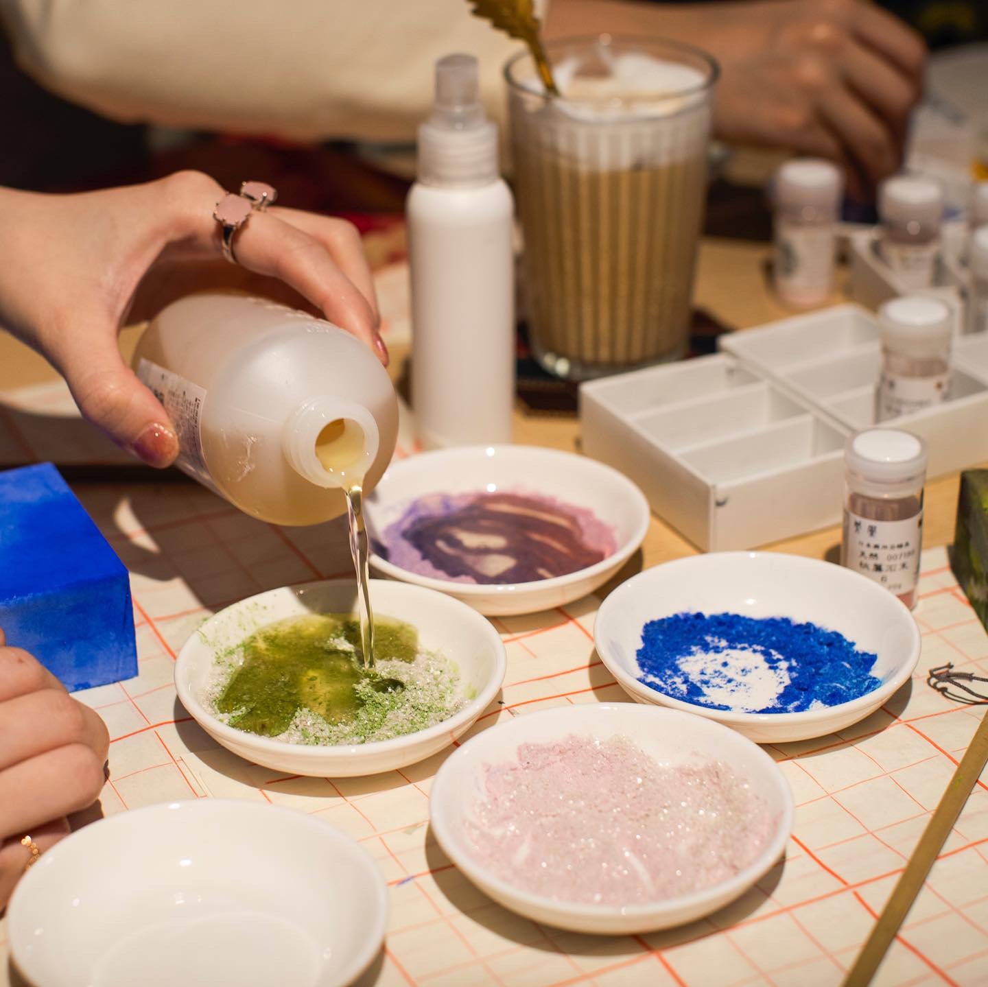 體驗中將會運用礦物岩彩的混合特性。