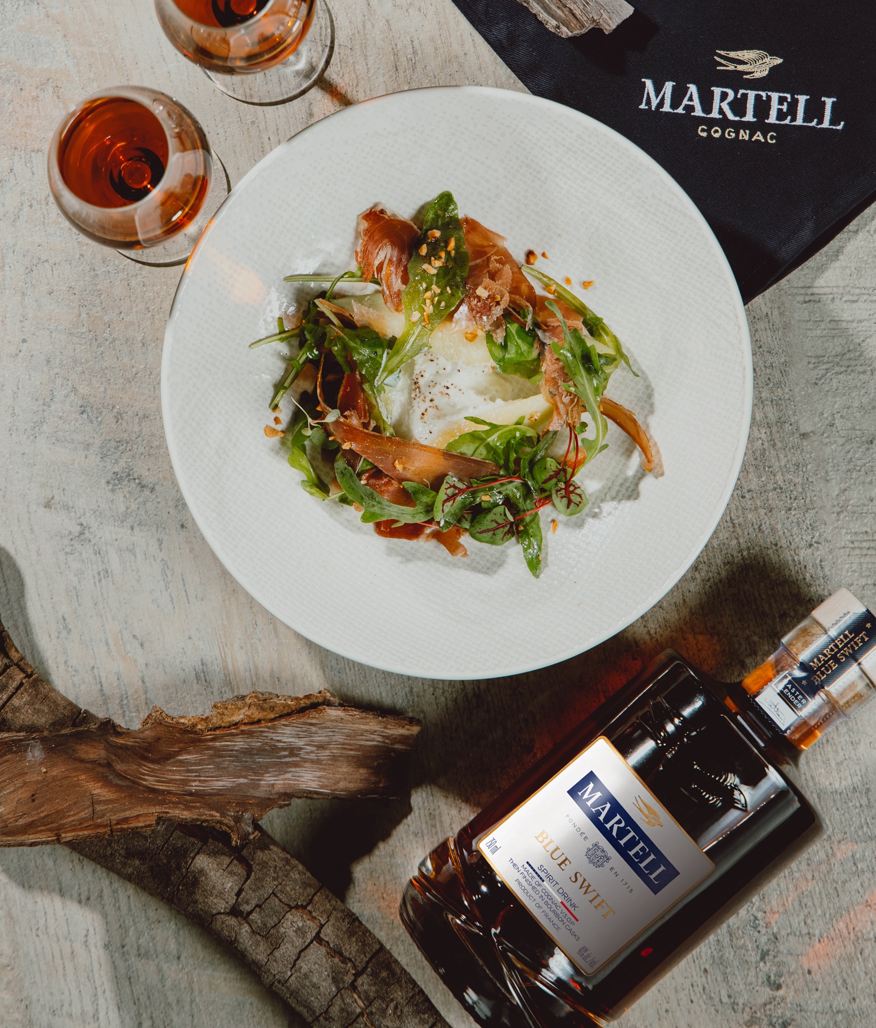 MARTELL BLUE SWIFT & Honeydew melon salad, Goat cheese, Serrano ham