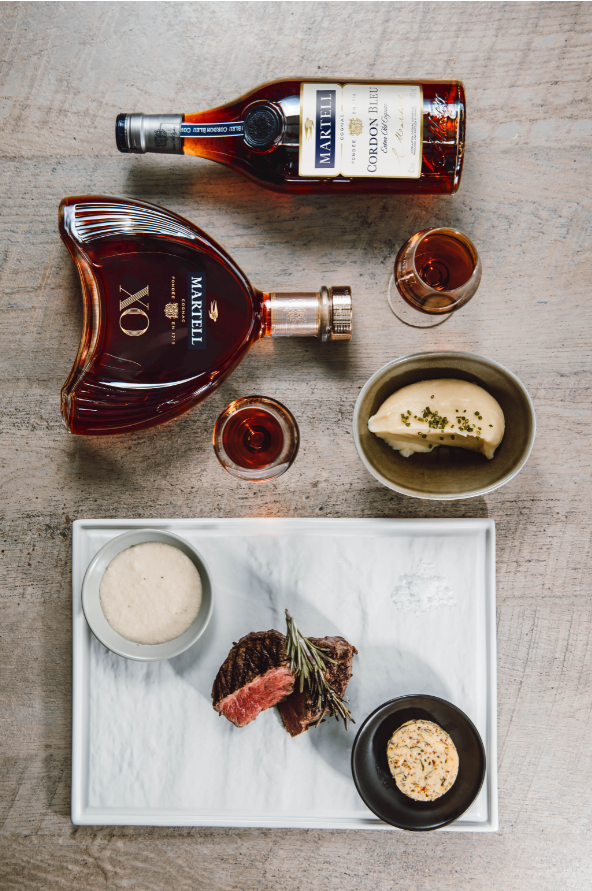 MARTELL X.O. & AUS tenderloin, Potato purée, Herb mustard butter, Horseradish crème fraîche