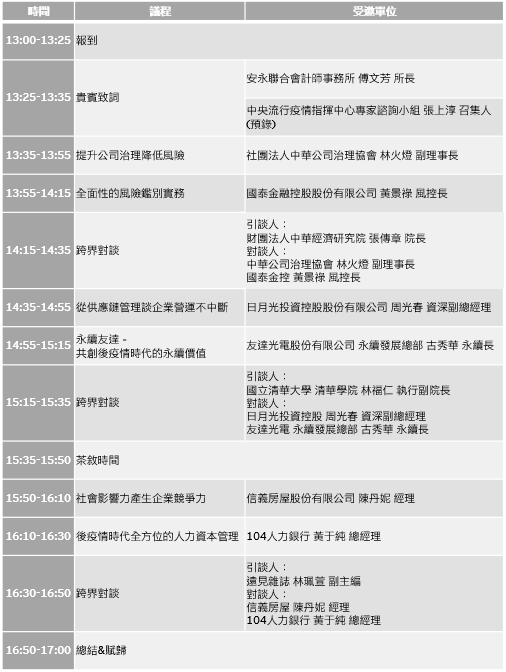 - 活動議程:(主辦單位保留隨時修正、暫停或終止本活動之權利,如有變動將公告於活動網站。)
