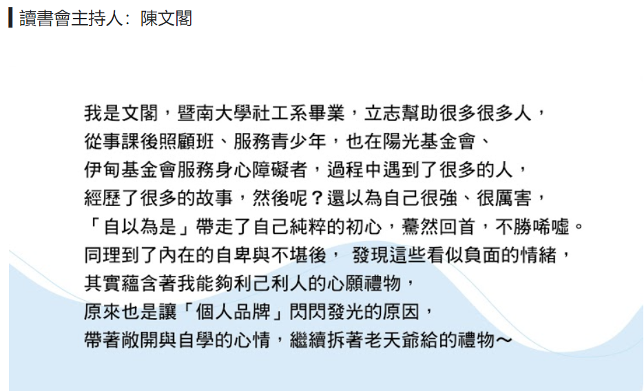 3. 讀書會過程將席地而坐,請穿著舒適的褲裝出席。