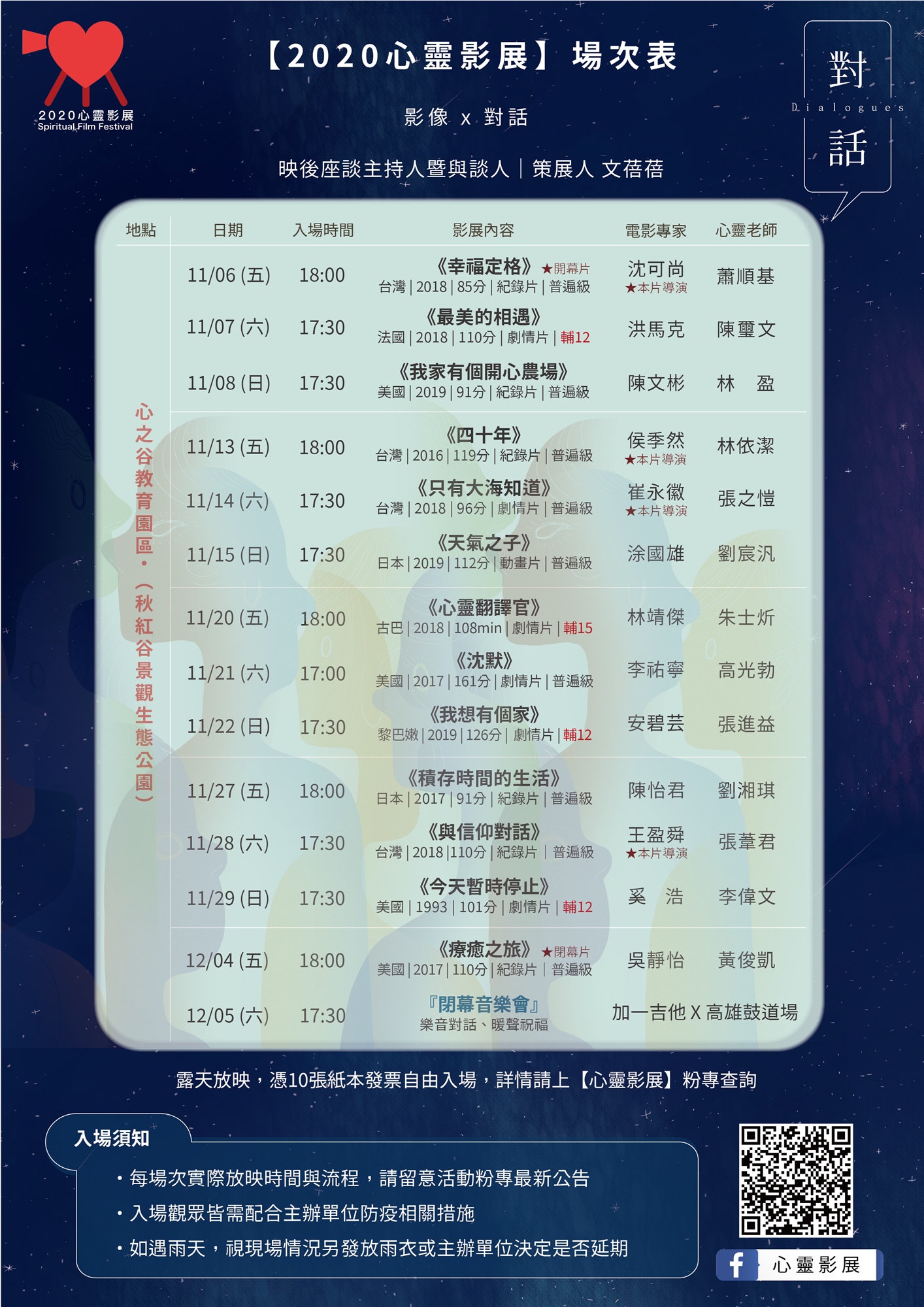 每場次實際放映時間與流程,請留意主辦單位官方粉專最新公告訊息喔!