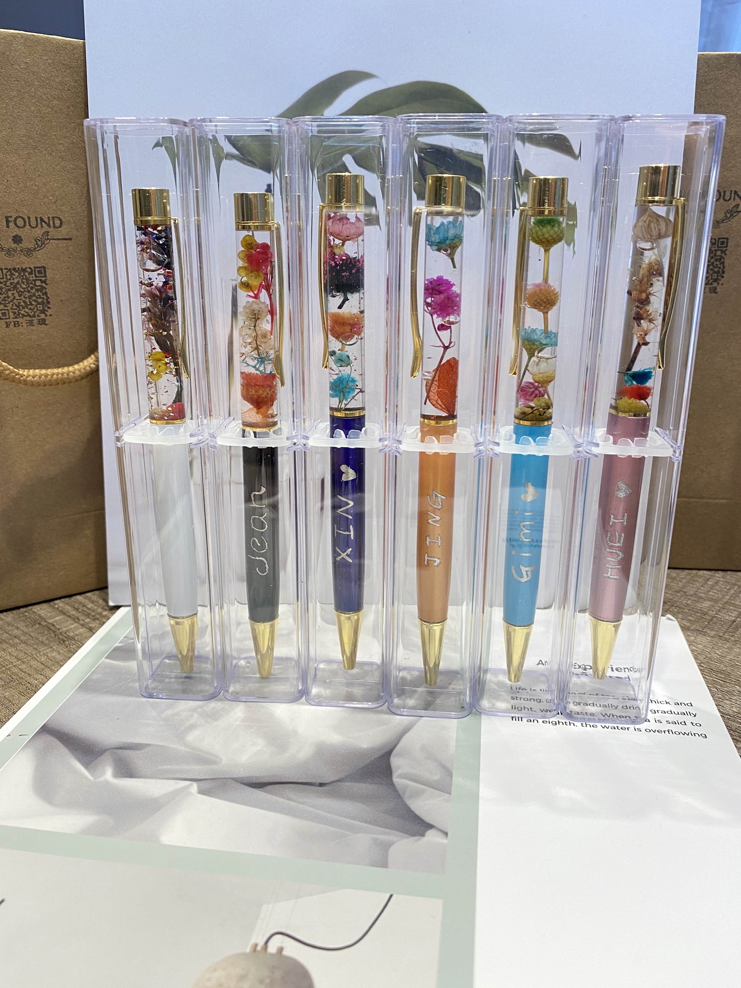 或浮游花筆:筆*3支(內含黑色筆芯)、筆盒*3支、附加藍色筆芯*3支、現場工具與耗材、包裝提袋