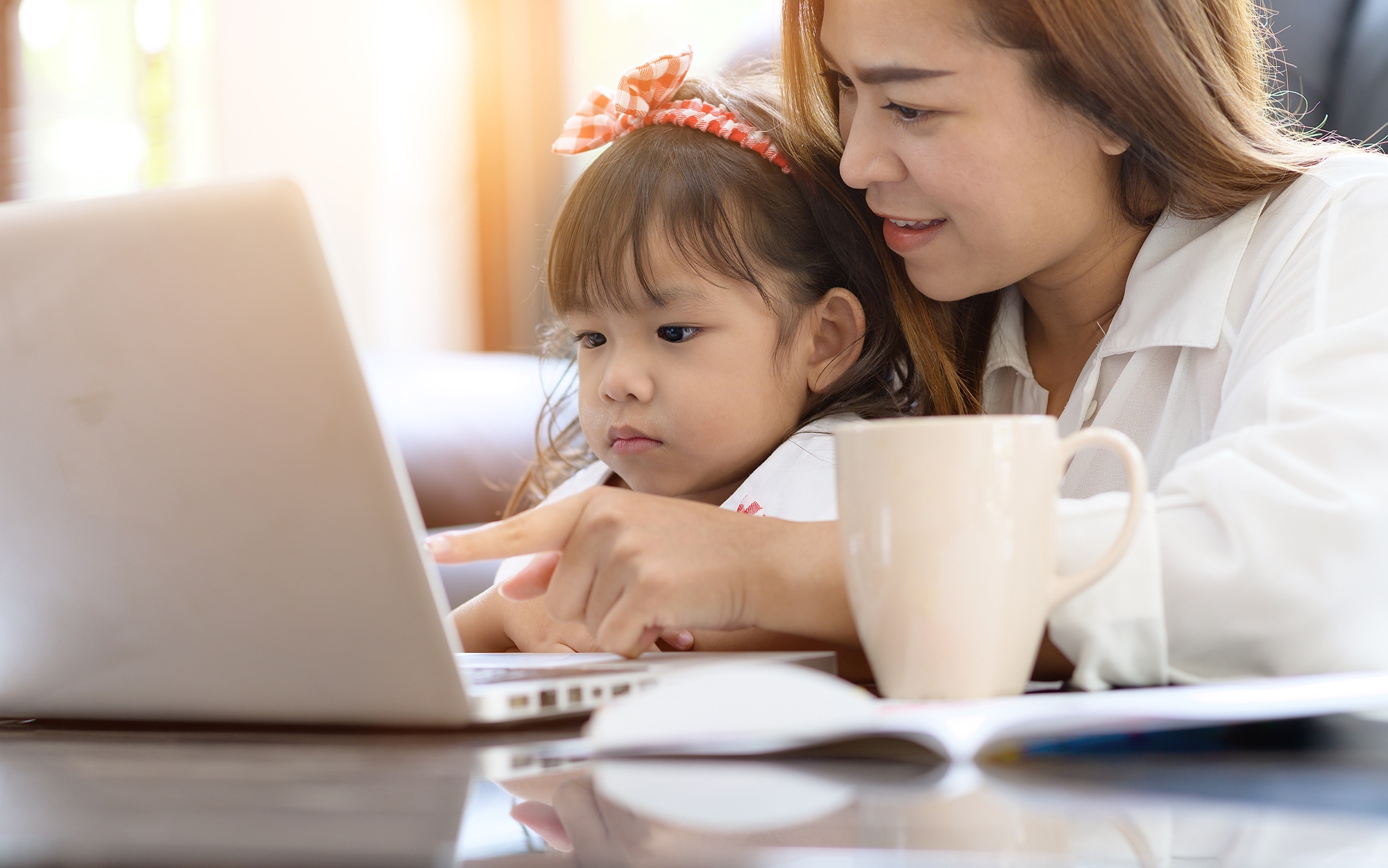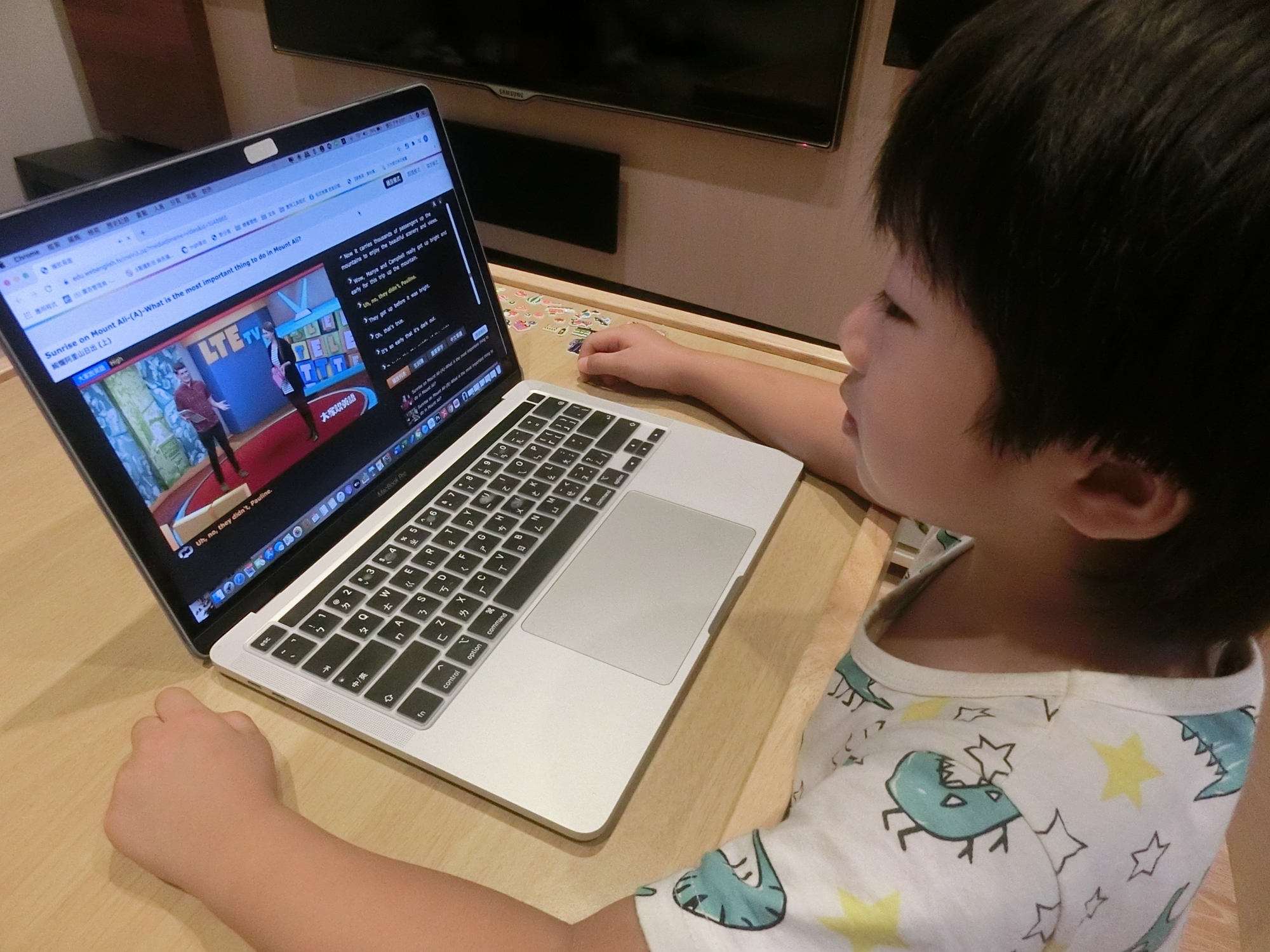 (圖示為4歲小孩參與的影音共讀畫面,學齡兒童觀看電腦時間控制在20分以內,或可用聽的)