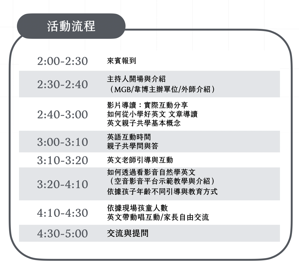 **本活動解說與分享是以中文進行,英文老師之互動與交流會以英文穿插